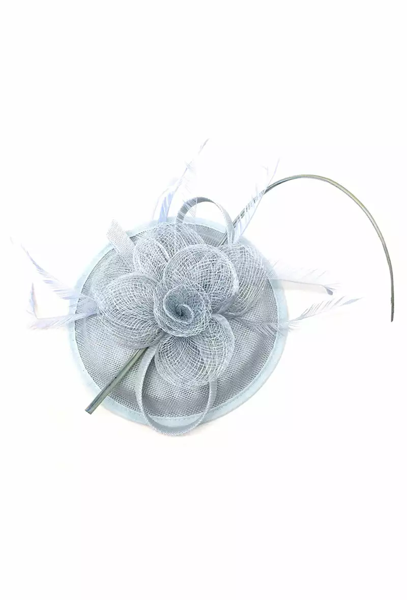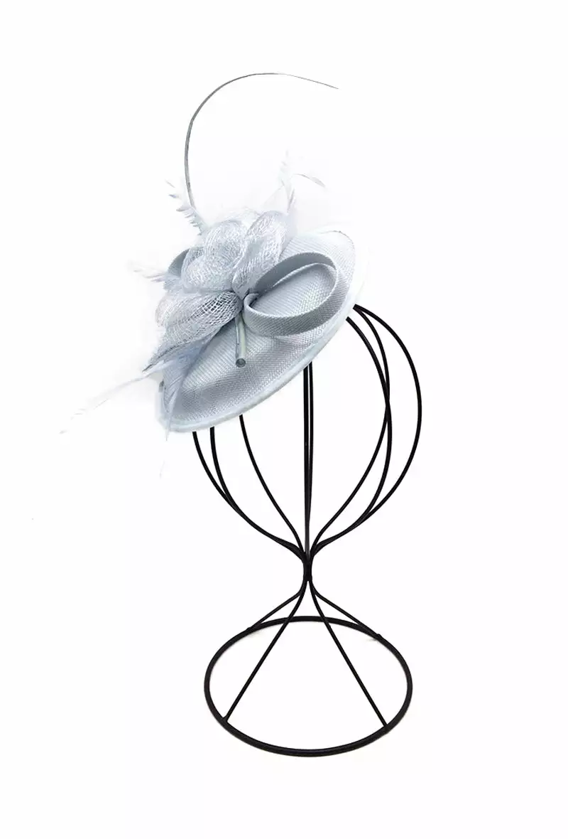 Fascinator versierd met wervelingen en veren. Bevestig met clip.