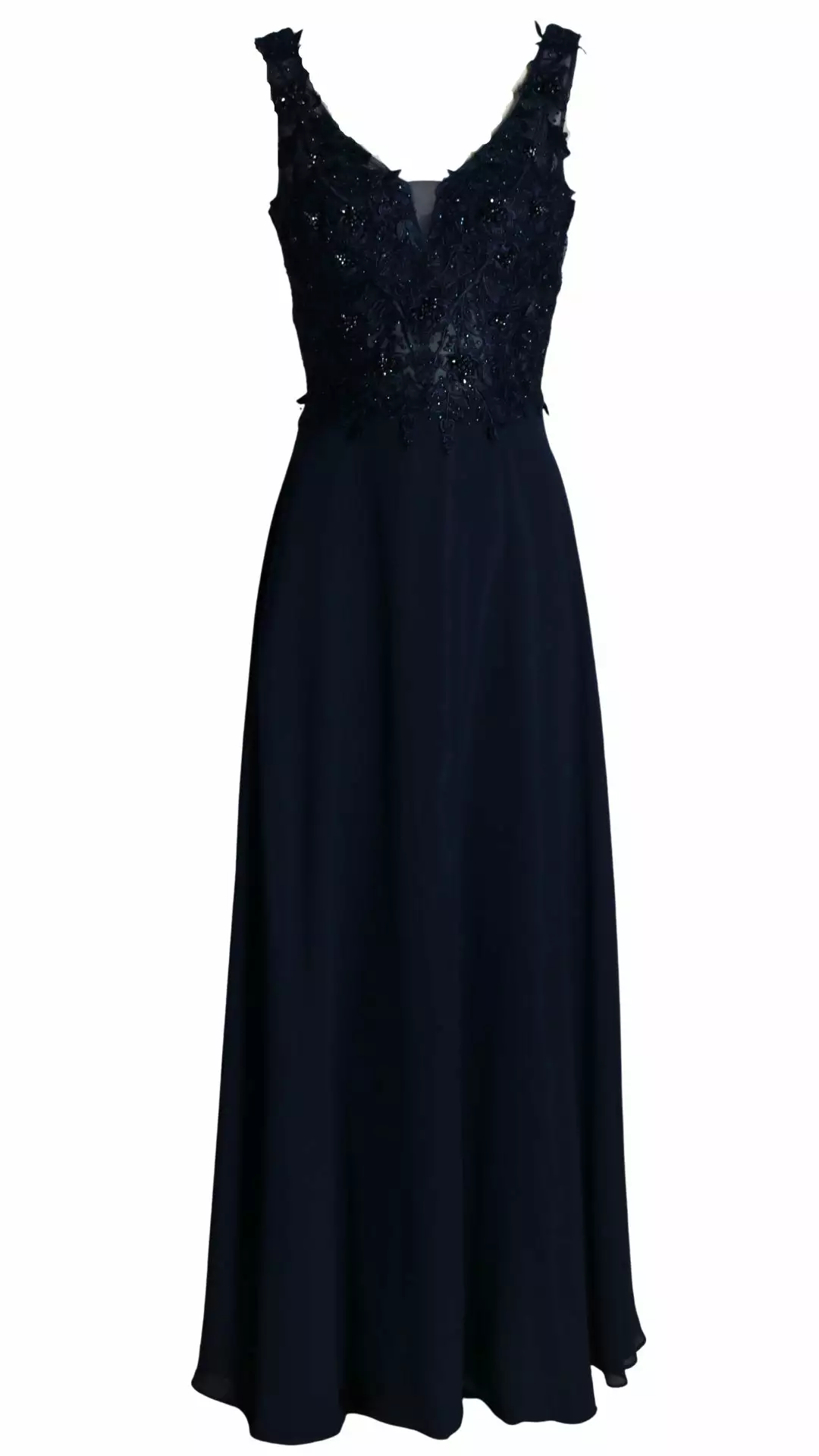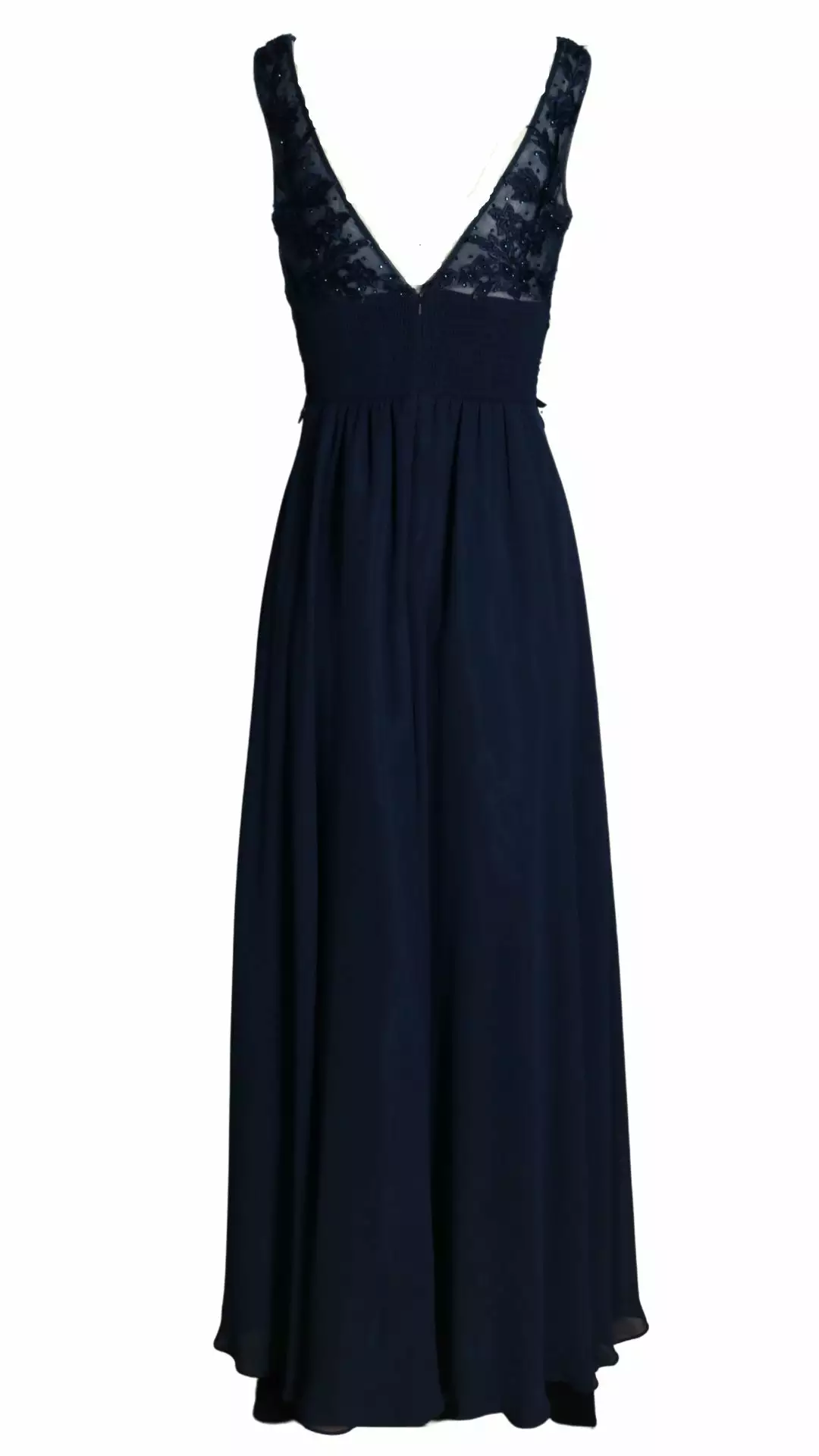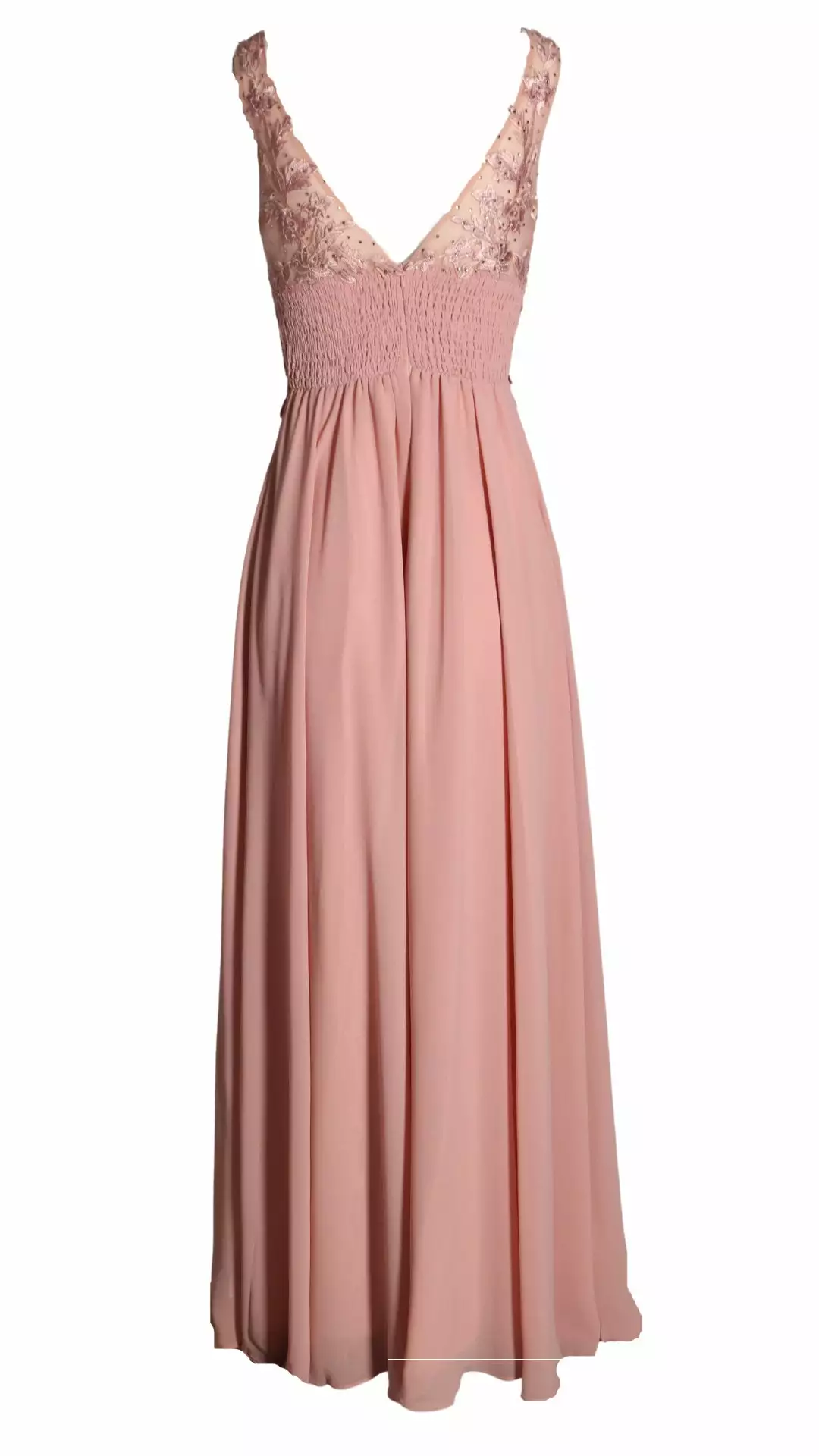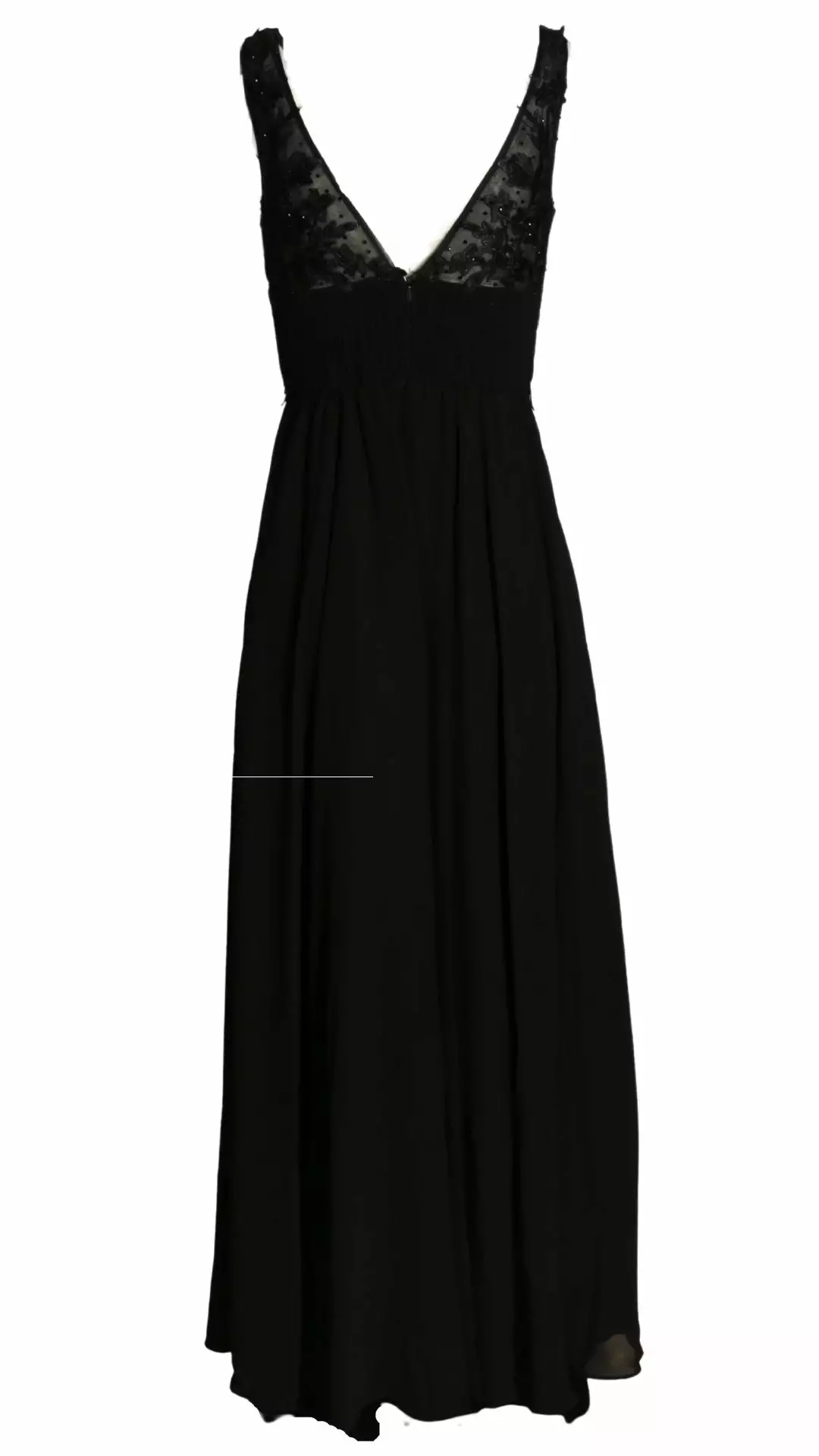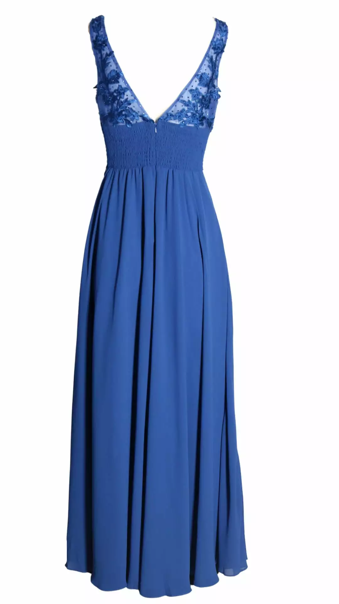 Deze prachtige maxi jurk is zeer geschikt voor een gala of voor bruidsmeiden. Kijk eens naar de elegante top met borduursels die voorzien zijn van mooie schitterende kraaltjes. De jurk heeft een elastische band op het rugpand waardoor deze draagbaar is voor de maten 36 t/m 40.