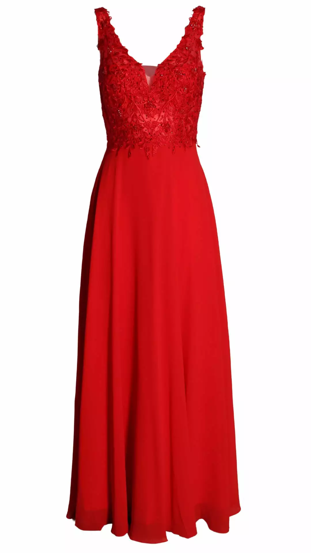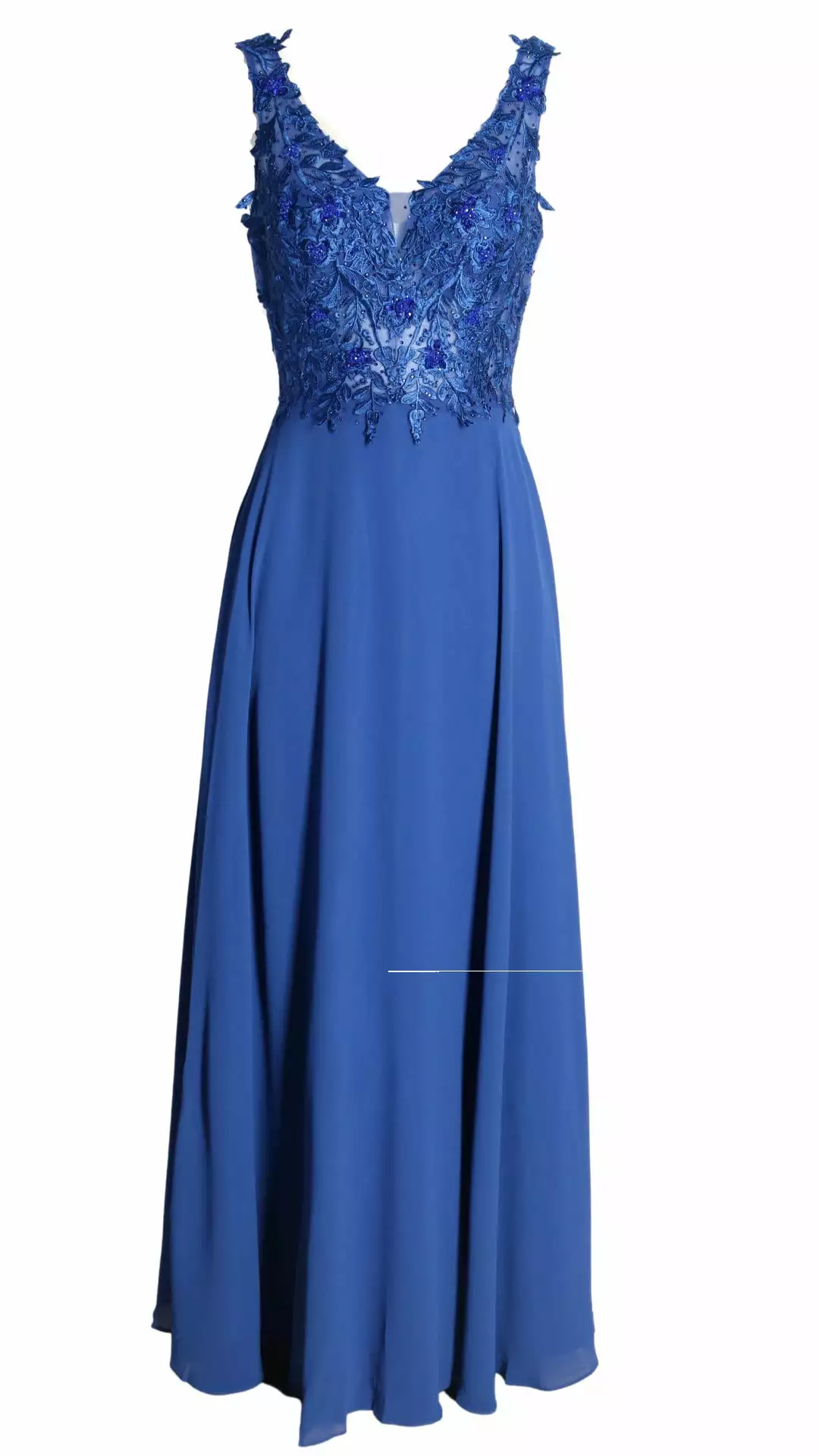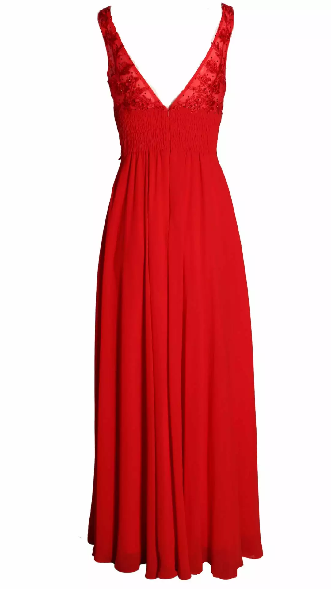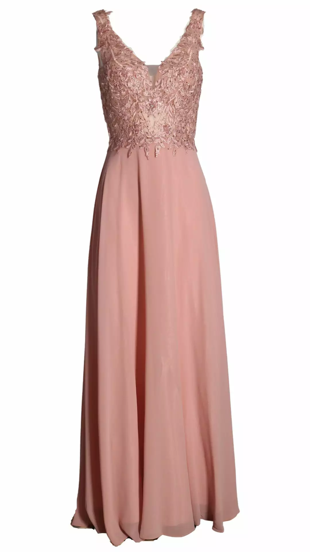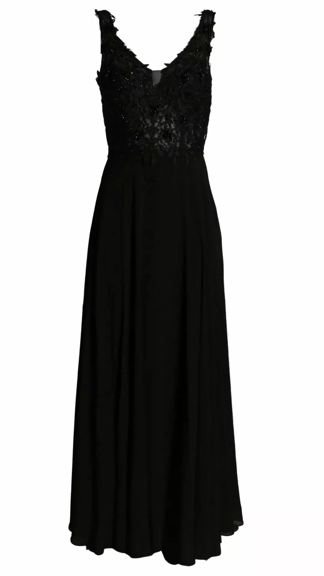 Deze prachtige maxi jurk is zeer geschikt voor een gala of voor bruidsmeiden. Kijk eens naar de elegante top met borduursels die voorzien zijn van mooie schitterende kraaltjes. De jurk heeft een elastische band op het rugpand waardoor deze draagbaar is voor de maten 36 t/m 40.
