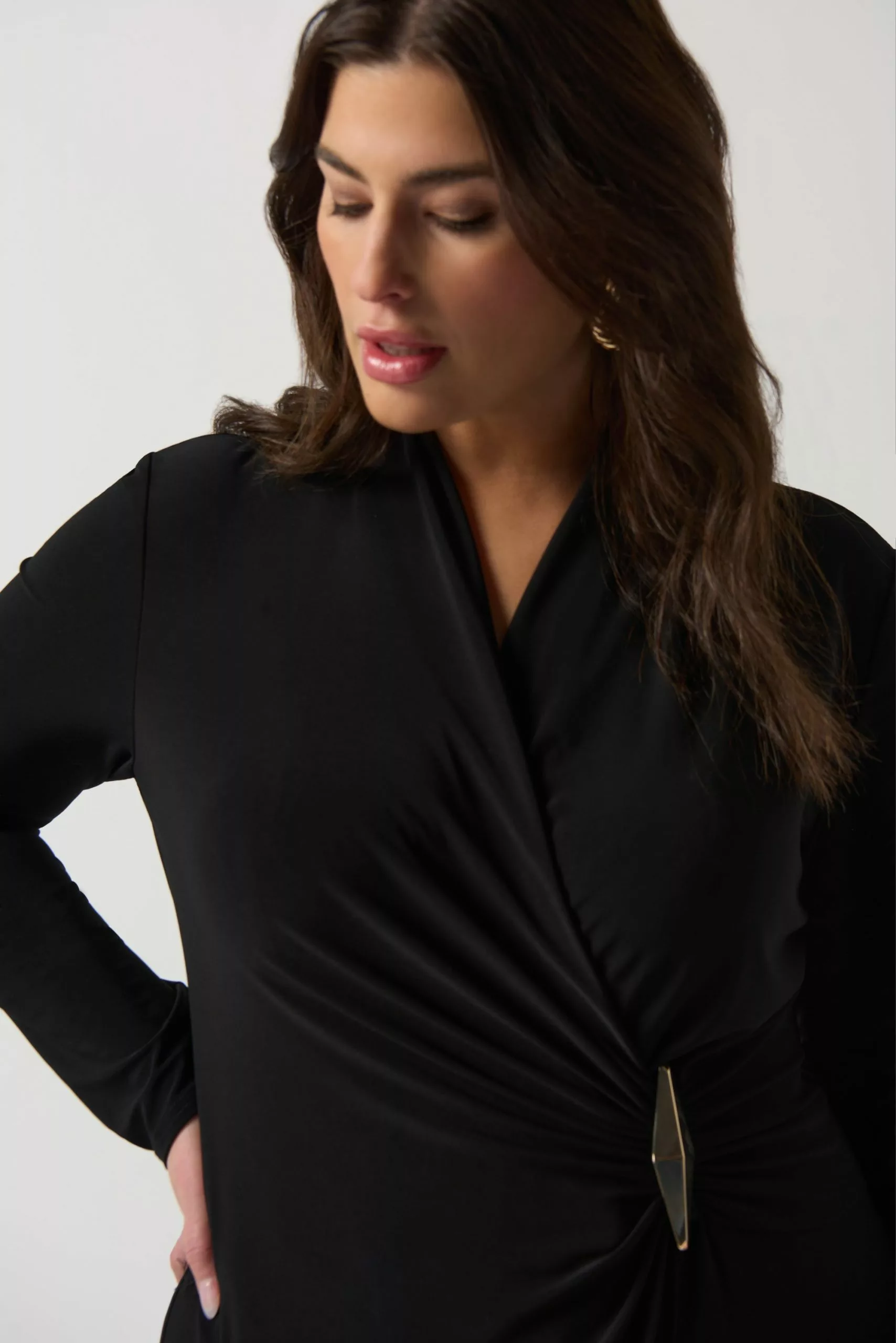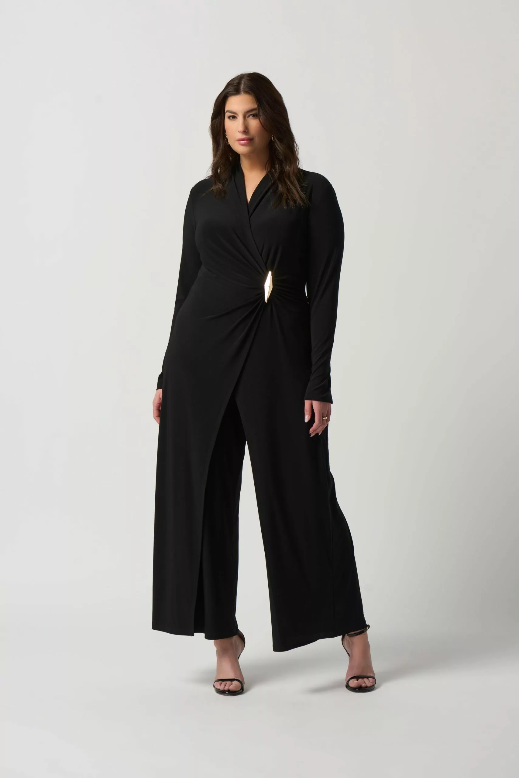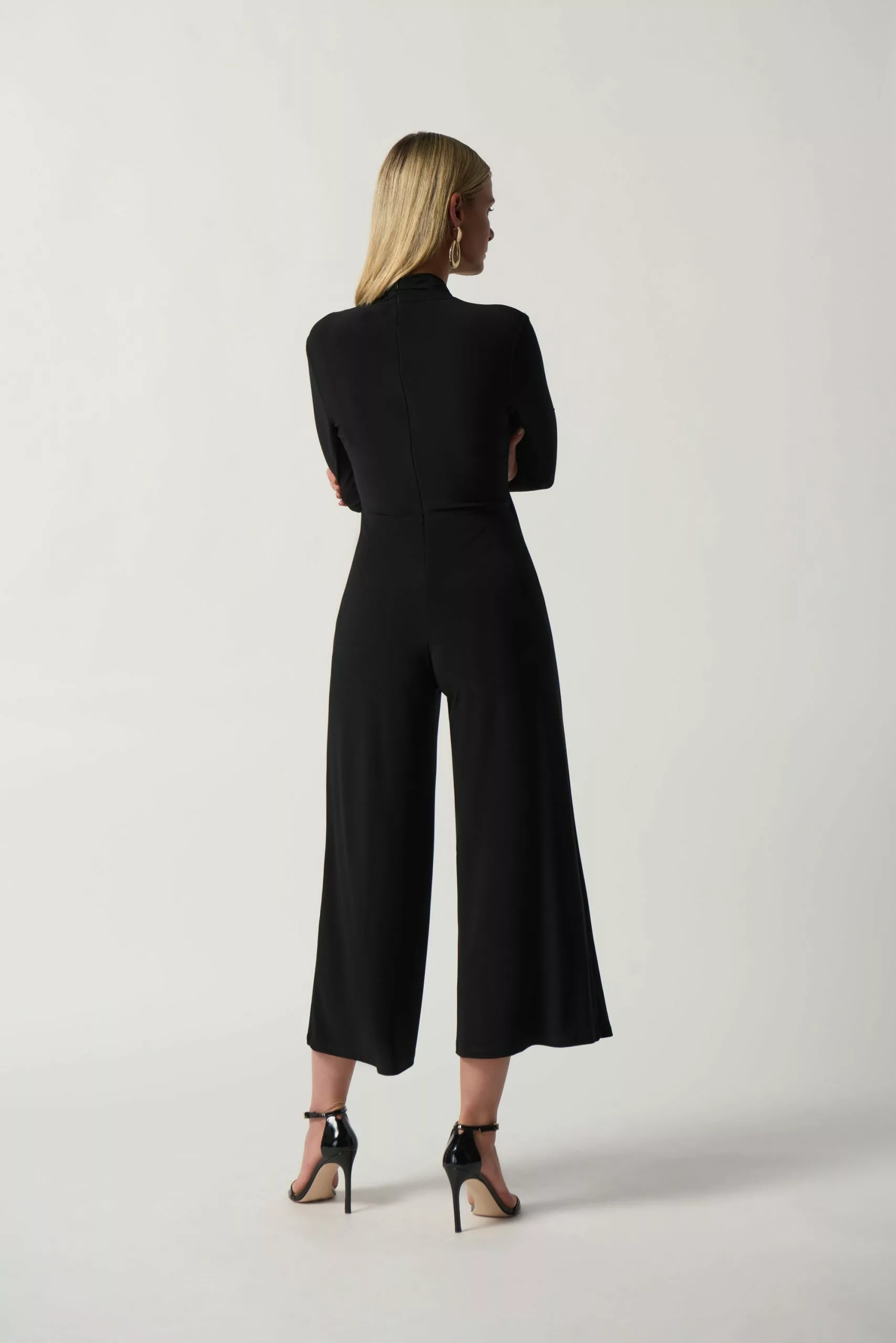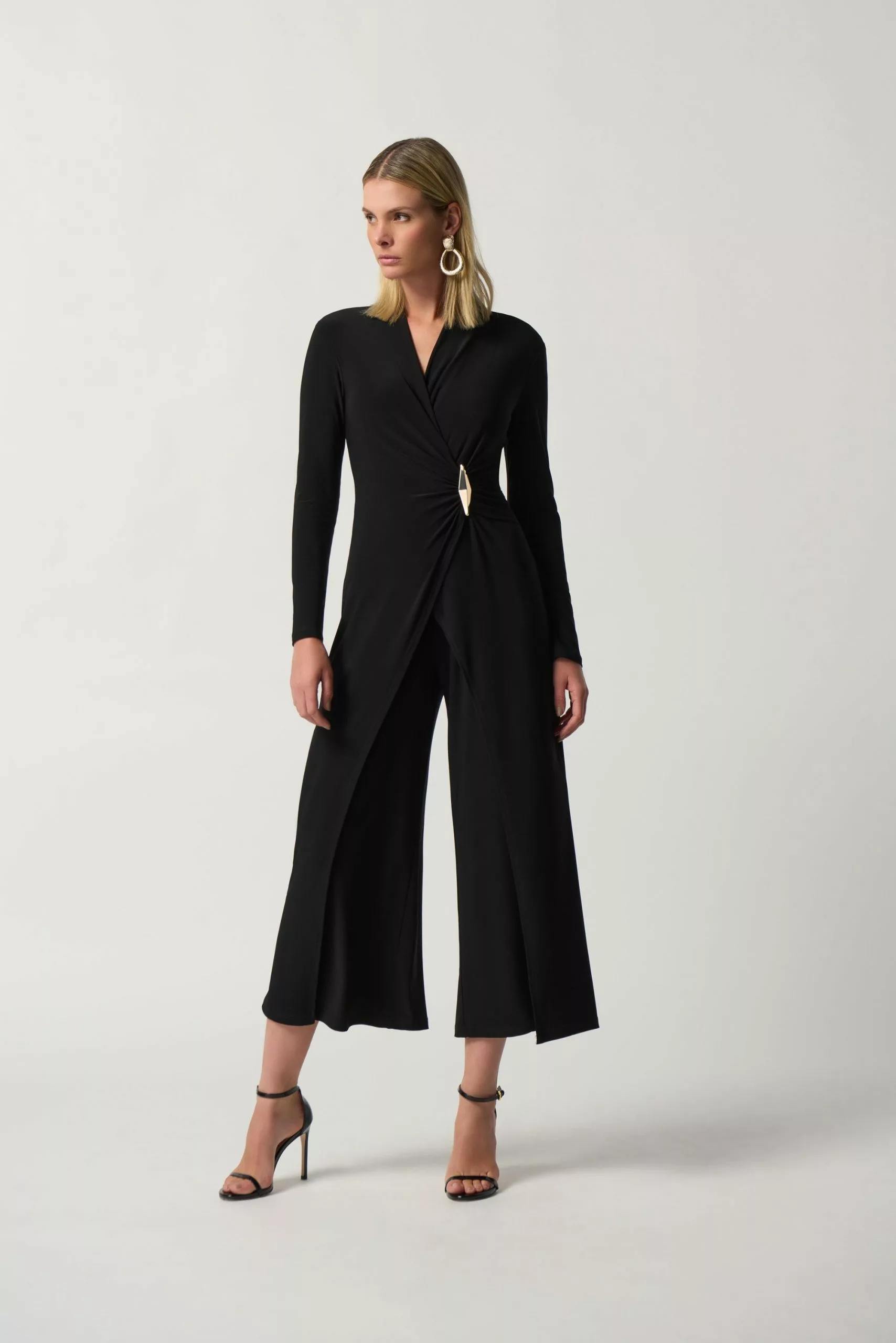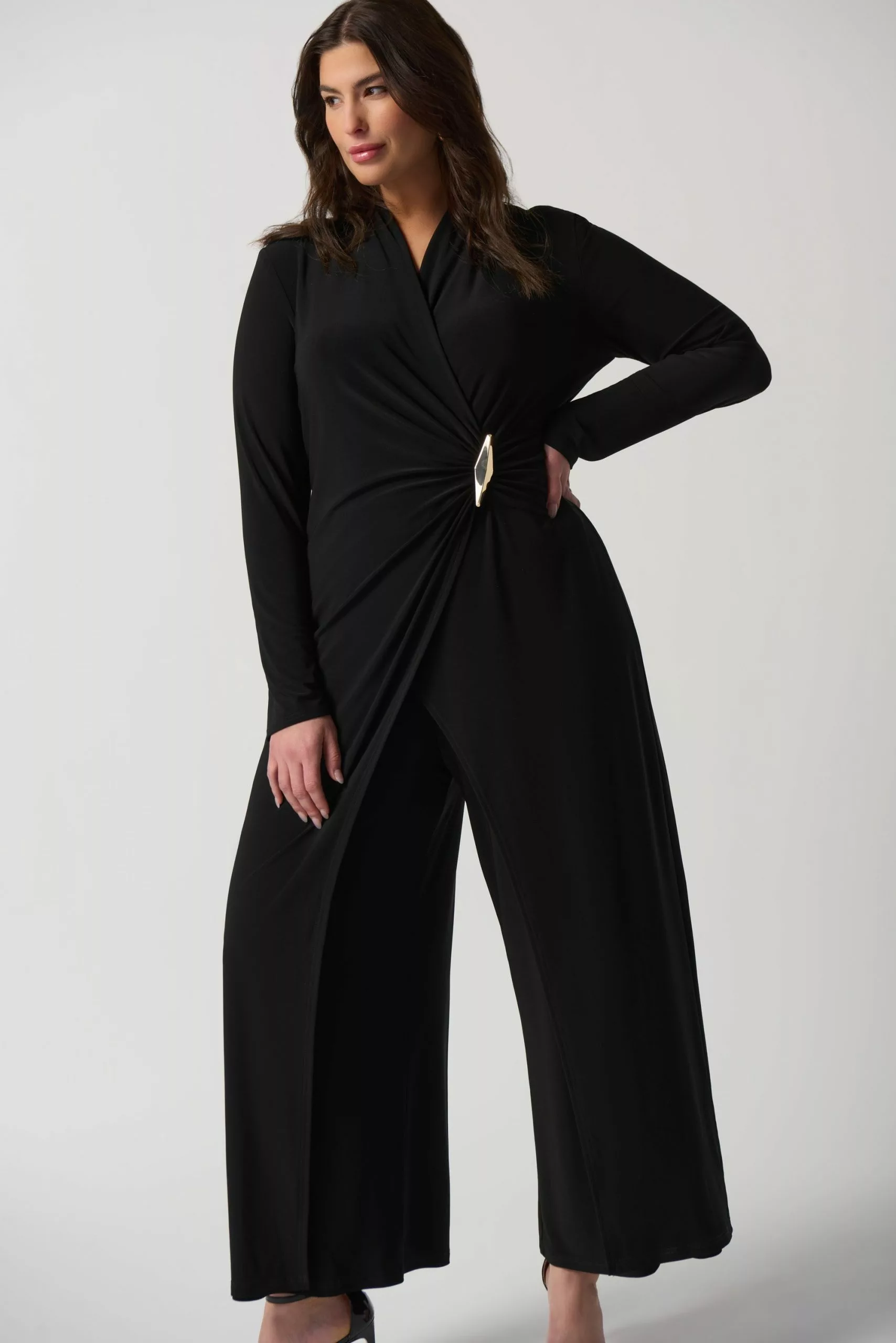 Deze luxe wrap culotte jumpsuit is het perfecte stuk om je look naar een hoger niveau te tillen. De siergesp en lange mouwen voegen een vleugje glamour toe, terwijl de culotte broek en wikkelhalslijn zorgen voor een chique en flatterend silhouet. En het mooiste? De ritssluiting maakt het gemakkelijk om in en uit te stappen. Of je nu een bruiloft, gala of cocktailparty bijwoont, deze unieke jumpsuit zal zeker de aandacht trekken.