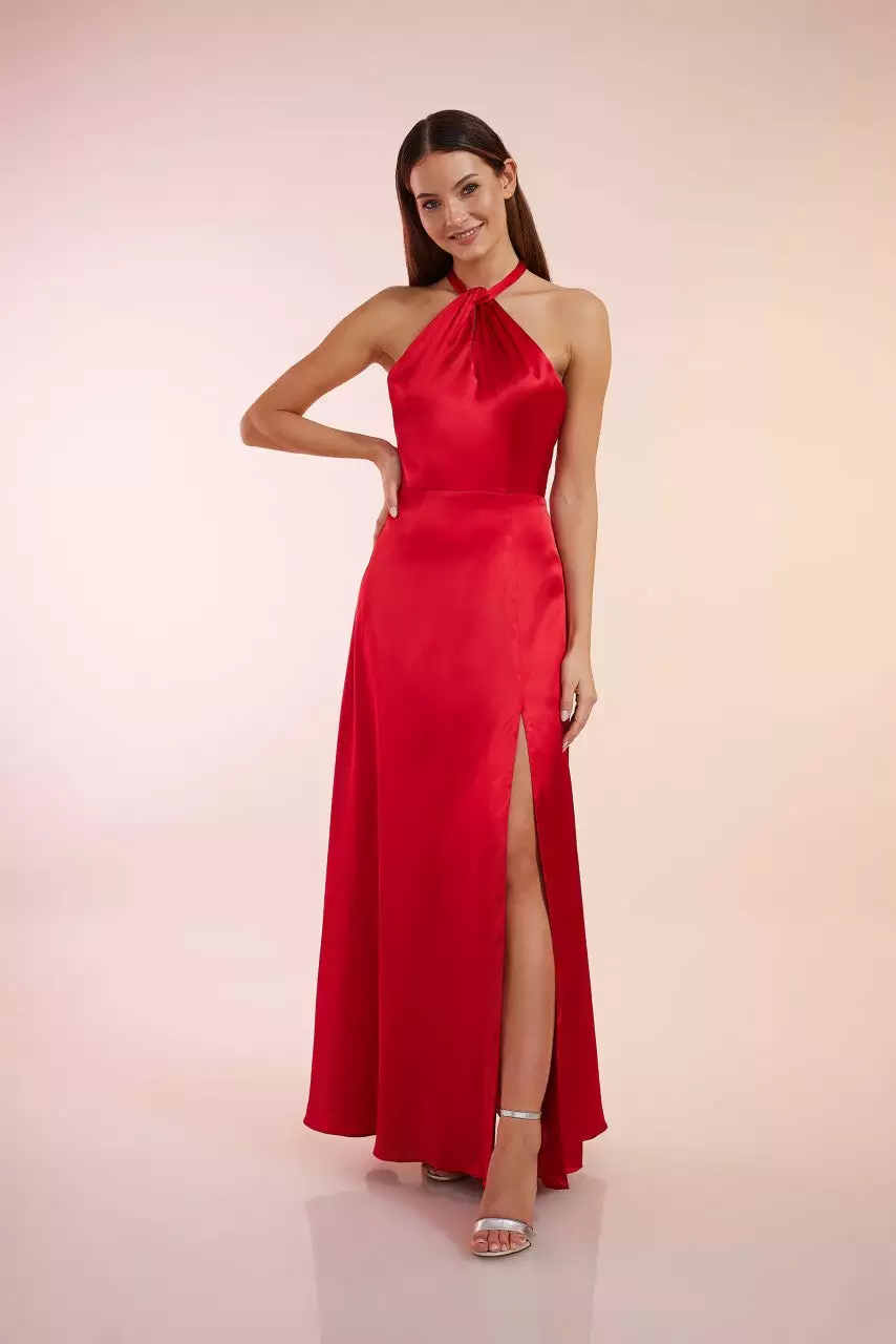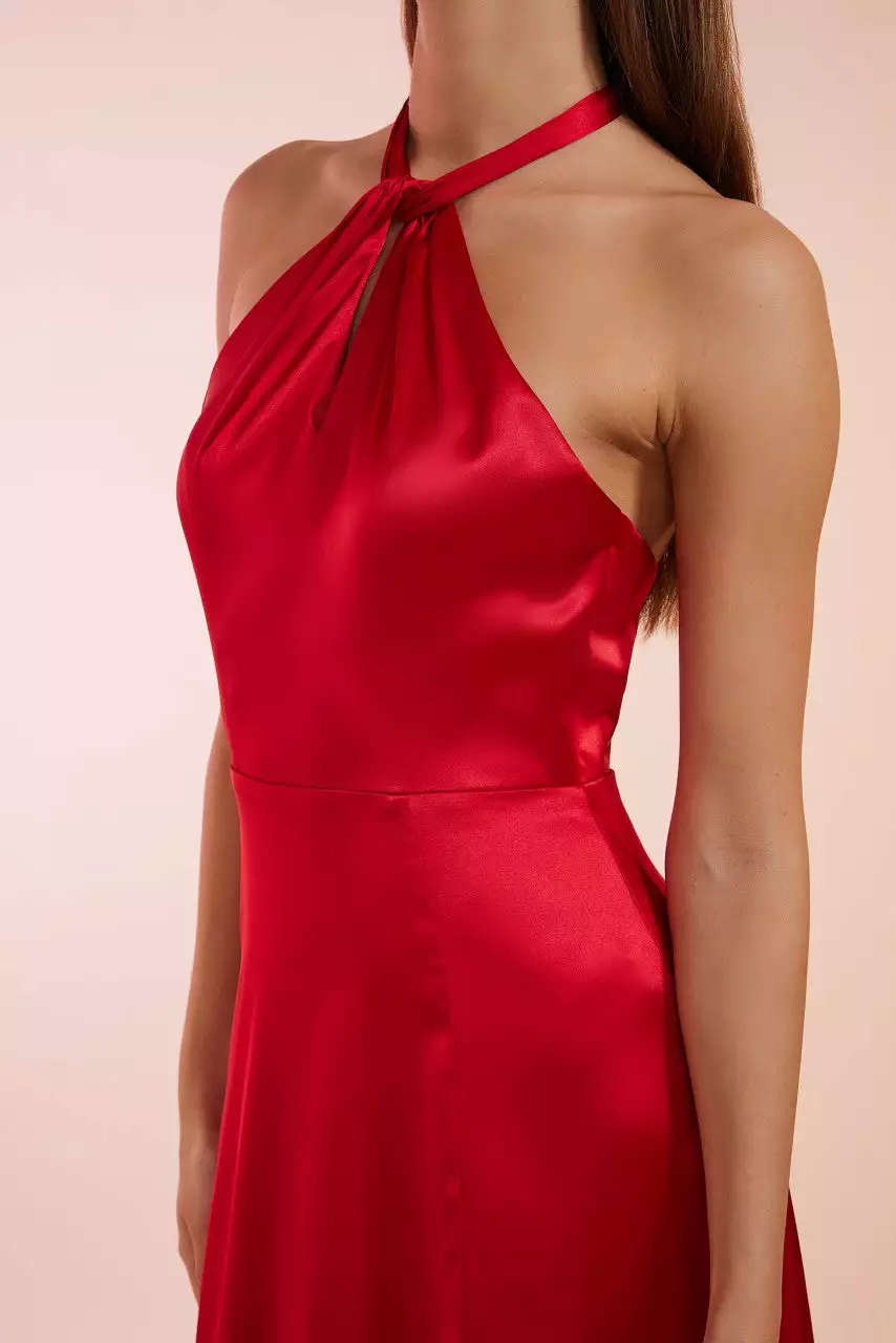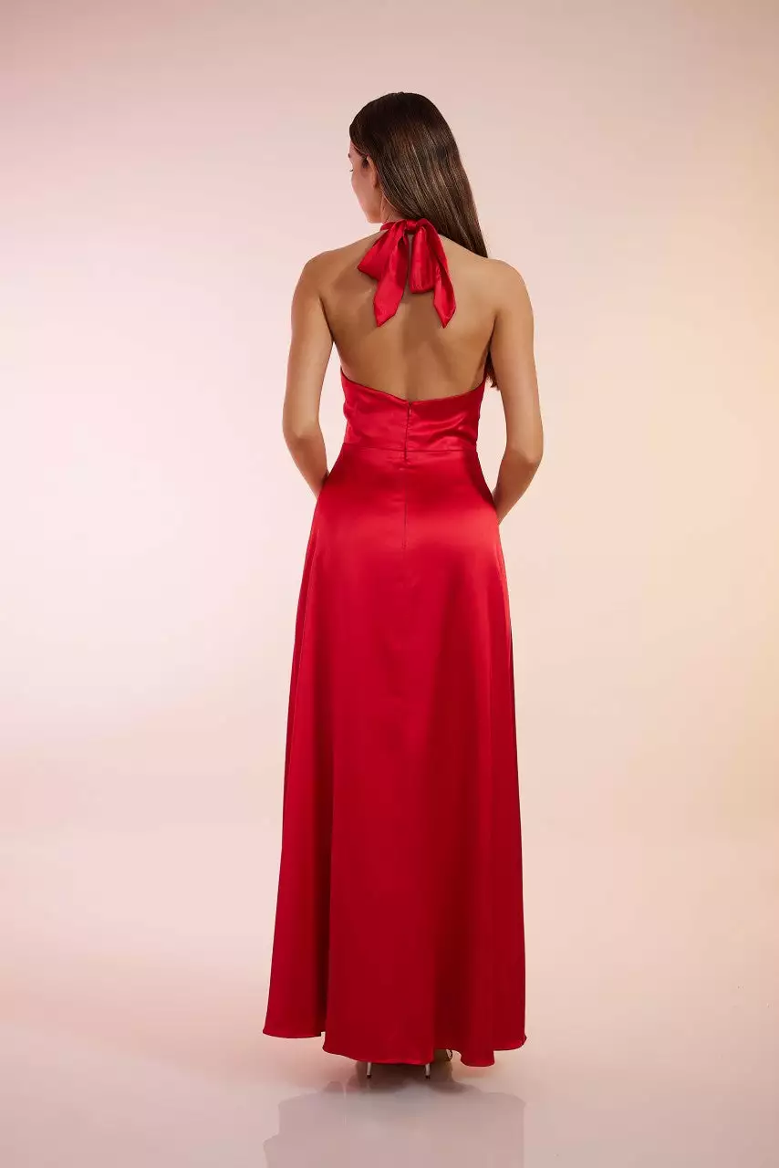 - Halter hals jurk met strik op de rug