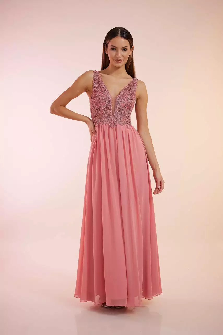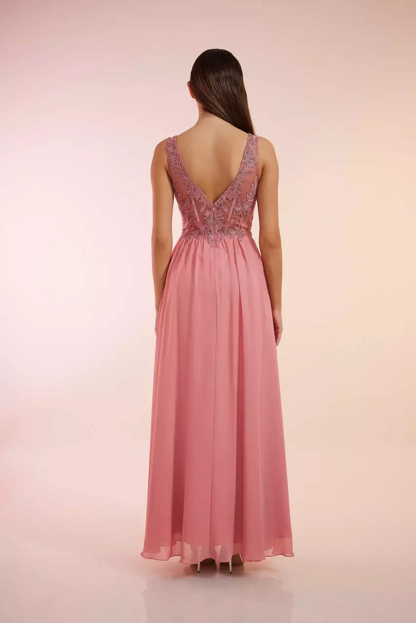 - Diepe V-hals met brede riemen en mesh inzetstuk
