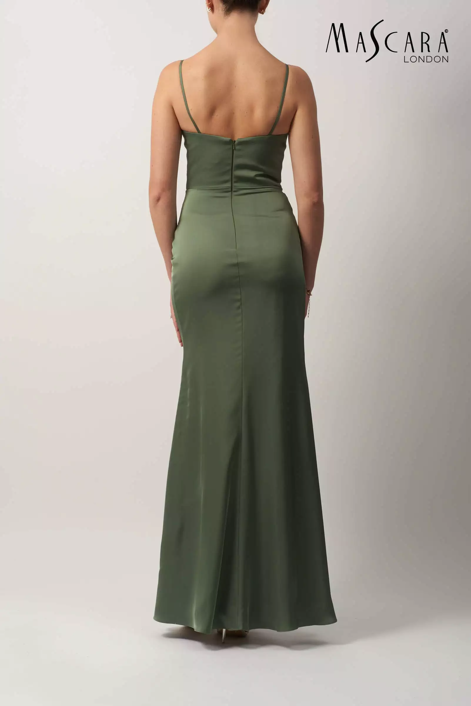 Satijnen avondjurk in zeemeermin model. Elegant en stijlvol in een prachtige mos groene kleur.