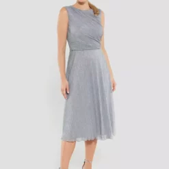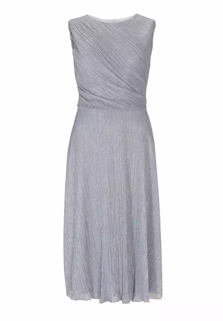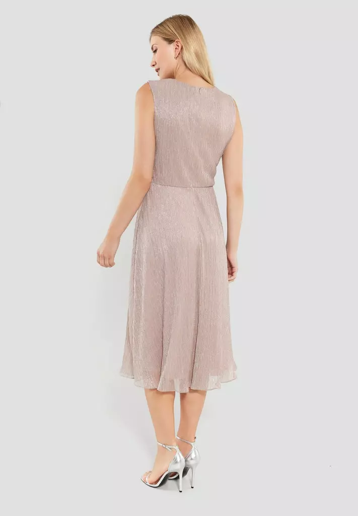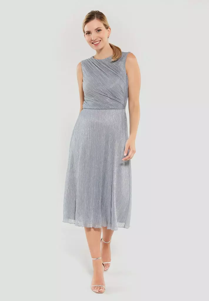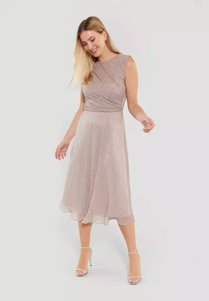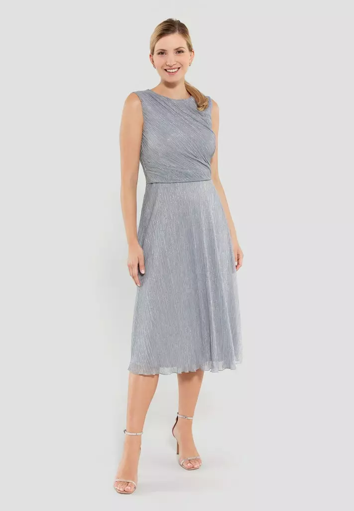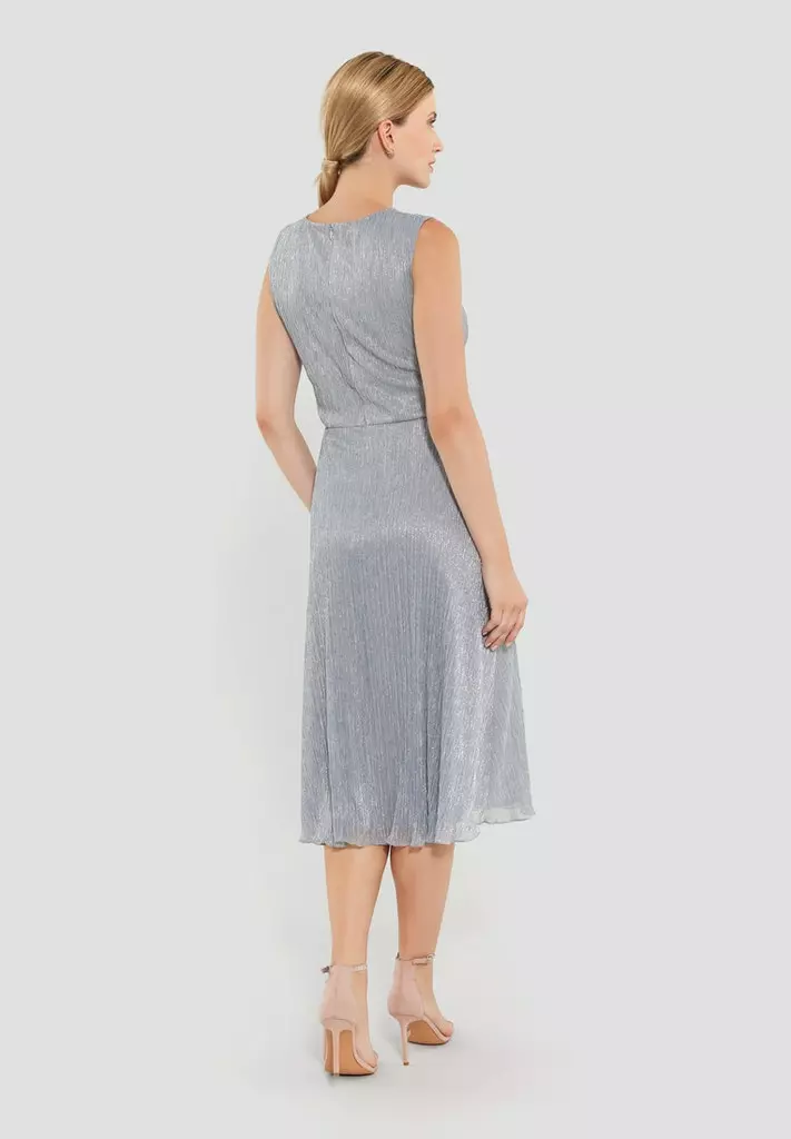 Deze schitterende midi jurk heeft een lurex draad door de stof geweven waardoor deze extra shiny is! De jurk sluit aan de top mooi aan op je lijf en valt vanuit daar losjes over je lijf. Ook verkrijgbaar in curvy maten.