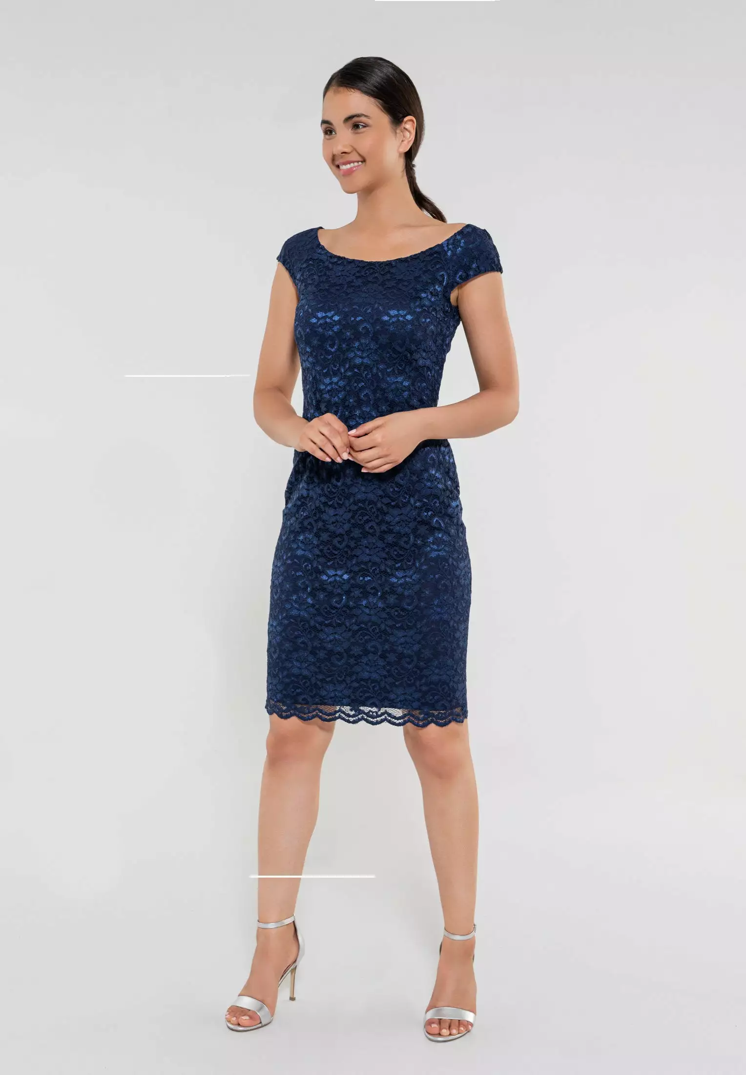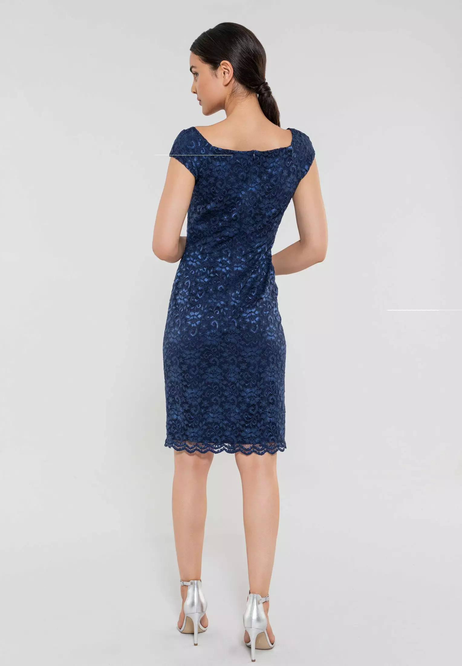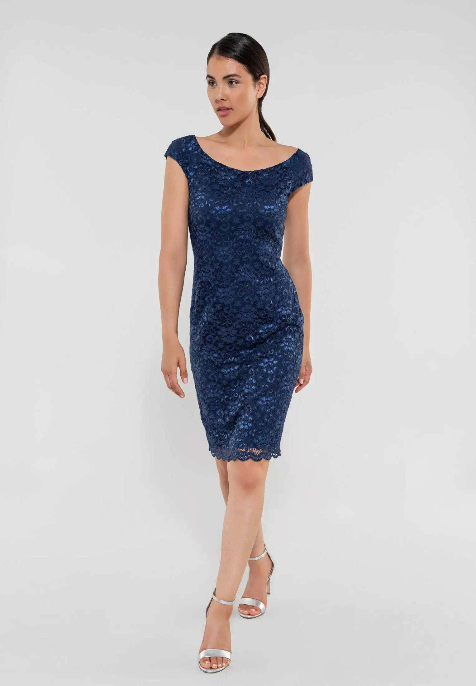Deze jurk heeft een rekbare kant waardoor de jurk mooi aansluit op je lijf maar toch comfortabel zit. De jurk heeft een boothals halslijn en valt rondom de knie.