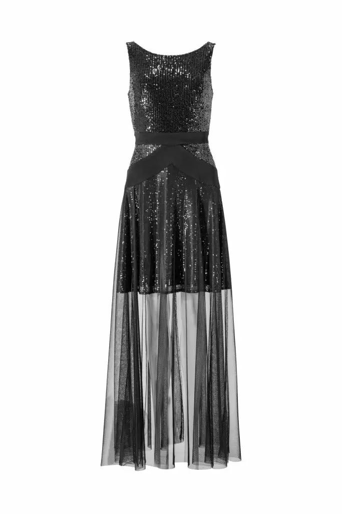 Deze cocktail gala jurk is zeer geschikt voor de wat stoerdere lady. Pittige cocktailjurk voorzien van pailetten en met een lange uitdagende tulle laag eroverheen. De jurk heeft een ronde halslijn, is mouwloos en zit mooi getailleerd in de taille. De stof rekt mee dus je kunt alle kanten op!