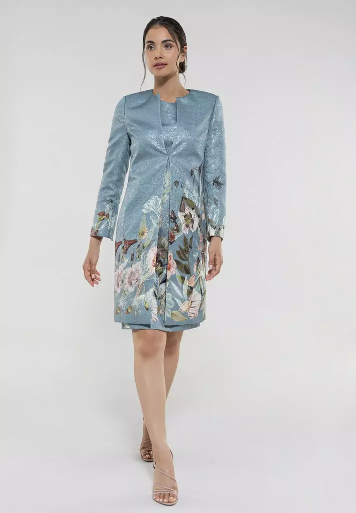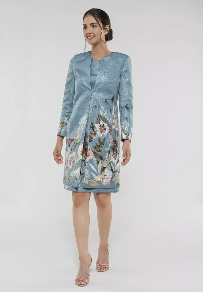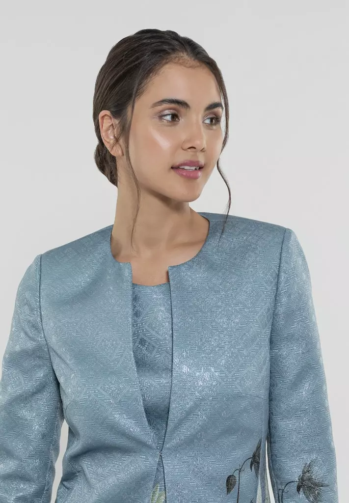 Deze lange blazer jas heeft een getailleerdmodel, lange mouw en steekzakken. De blazer kan perfect met de bijpassende jurk gecombineerd worden of juist casual gecombineerd met een jeans en leuk shirt.