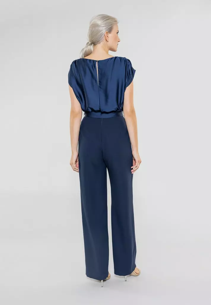 Deze prachtige jumpsuit met satijnen top en crepe pantalon is speciaal gemaakt voor de vrouw met curves! Mooie pasvorm, zij zakken en een goede taille. Ook beschikbaar in de maten 32 t/m 42.