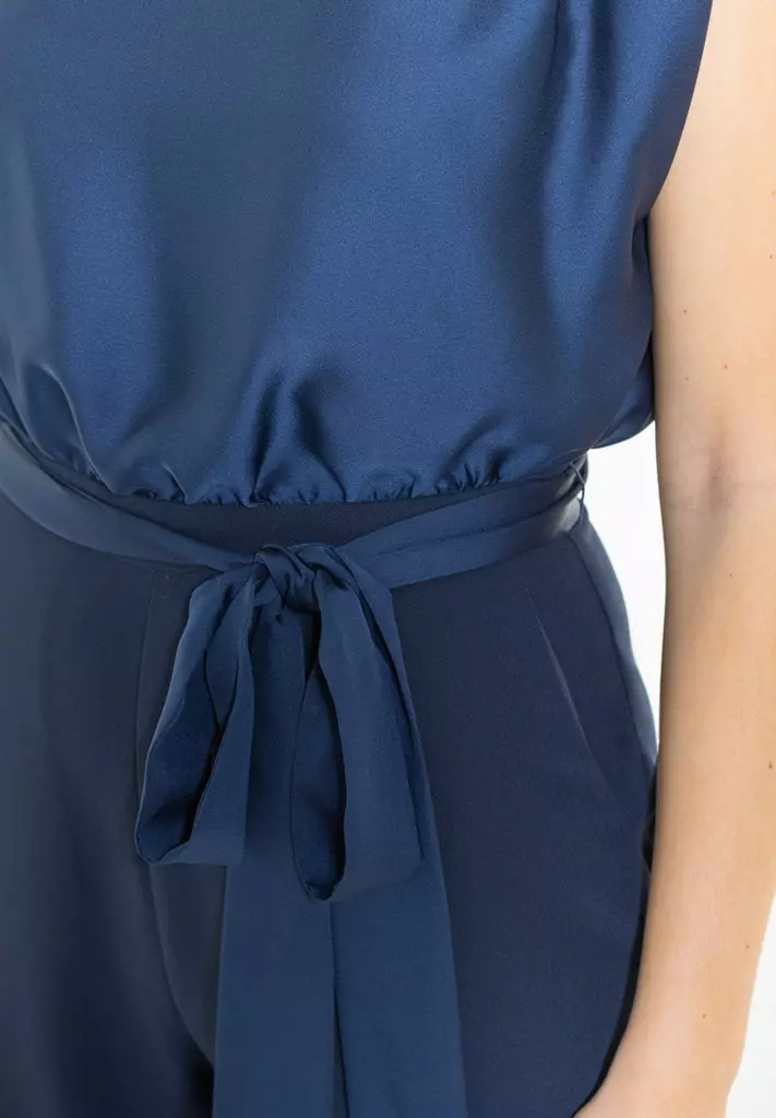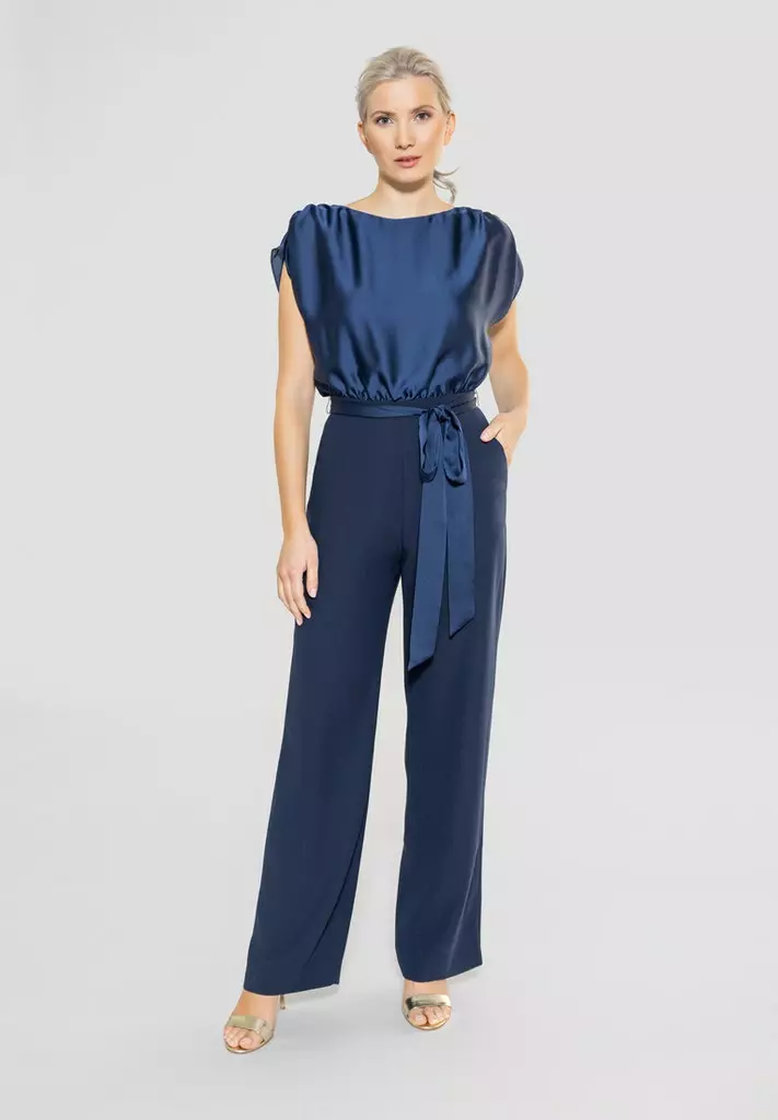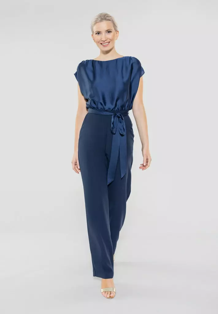 Deze prachtige jumpsuit met satijnen top en crepe pantalon is er een die altijd goed is! Feestje, werk of alledaags. Mooie pasvorm, zij zakken en een goede taille. Ook beschikbaar in curvy maten 44 t/m 52.