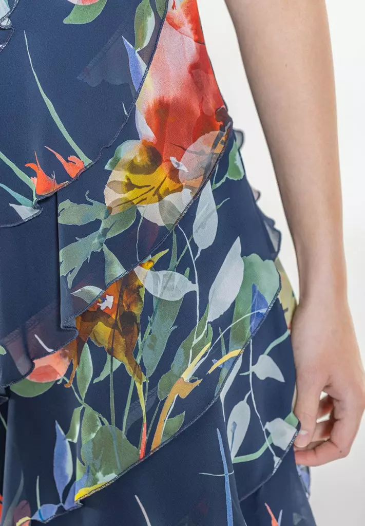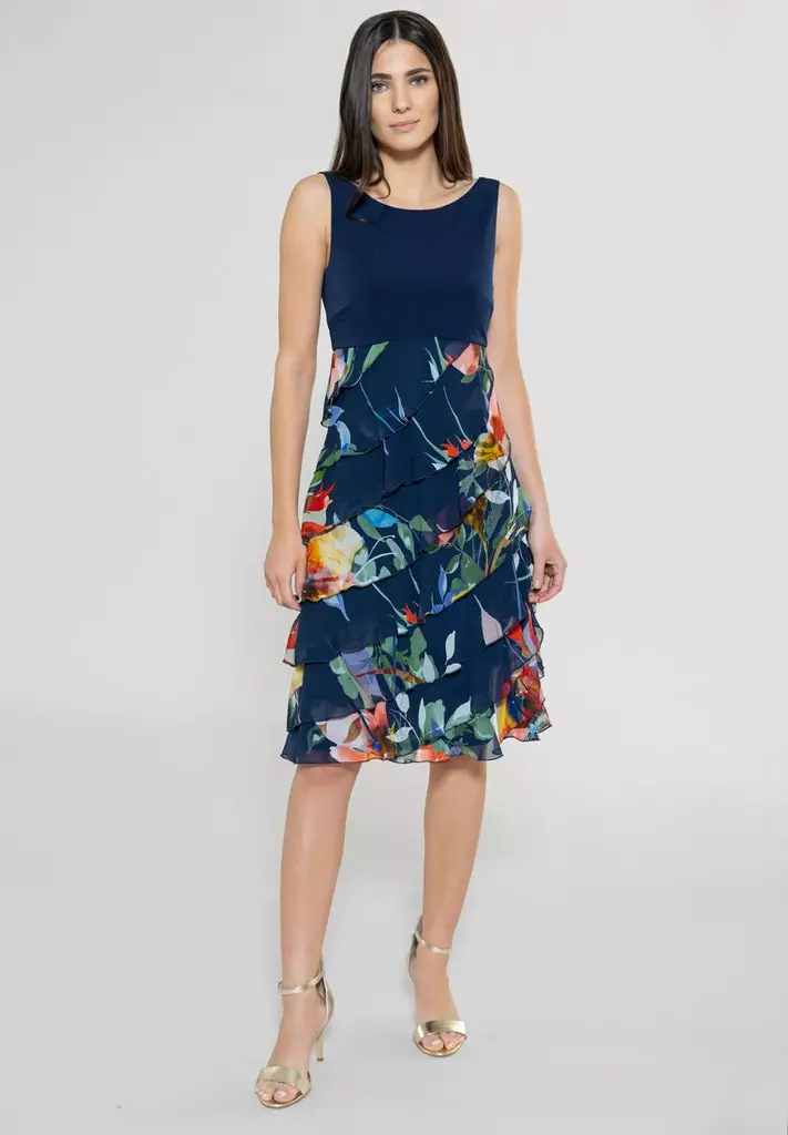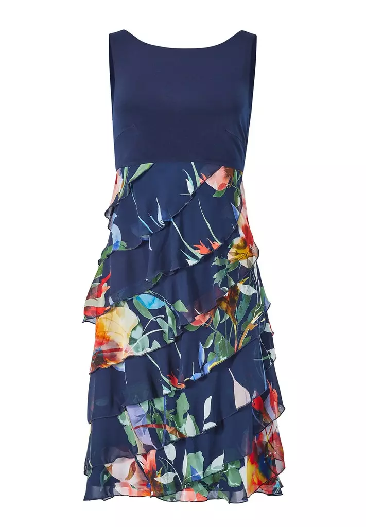 De kleurrijke variant van onze absolute toper, de media dress. Deze jurk zit heerlijk, verhuld een eventueel buikje en is vooral lekker zwierig en feestelijk! De jurk rekt mee en heeft een ritssluiting aan de zijkant.