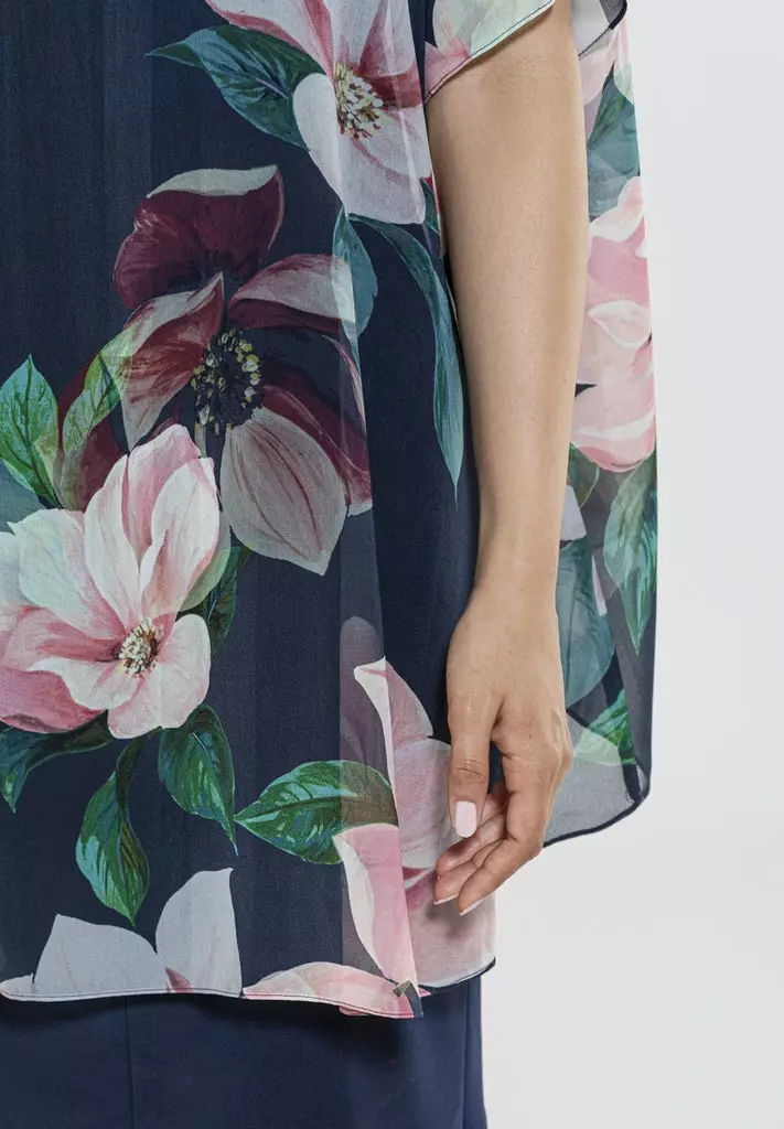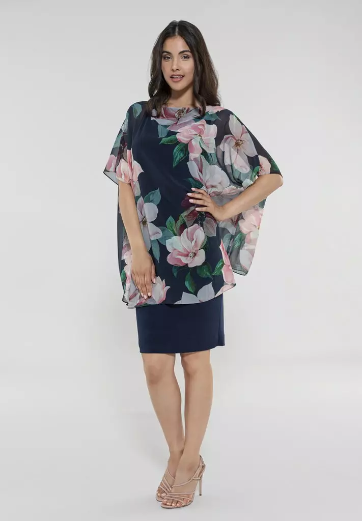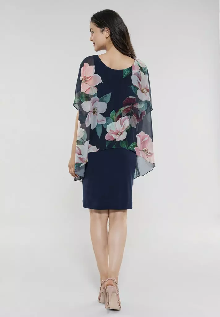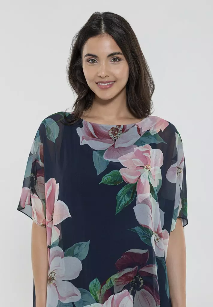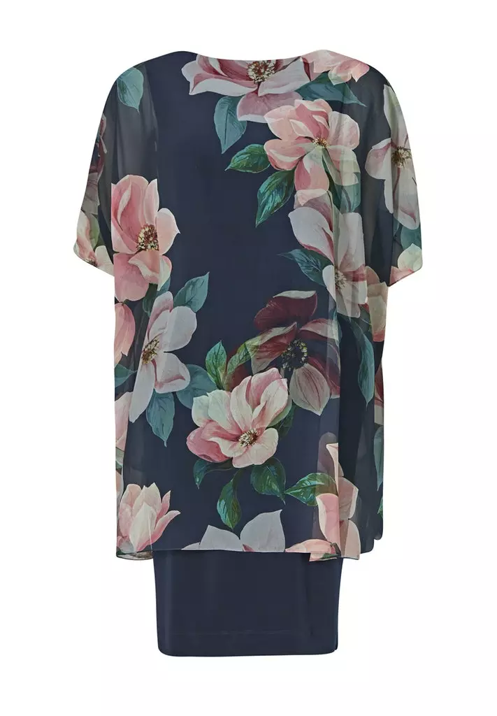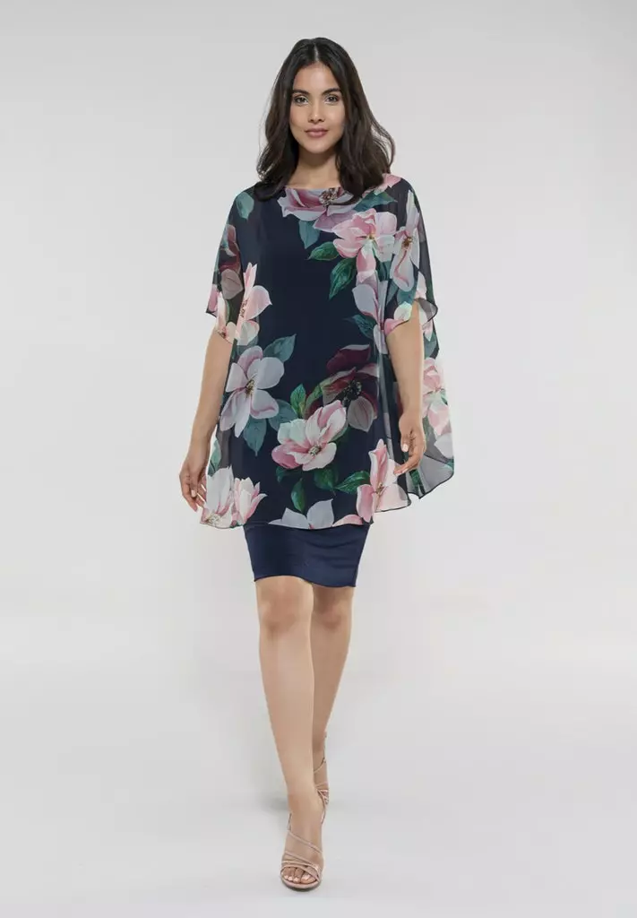 Prachtige jurk waarbij de onderjurk om je lijf valt en de chiffon bloementop losjes eroverheen. Dit geeft een mooi effect en kleed af.