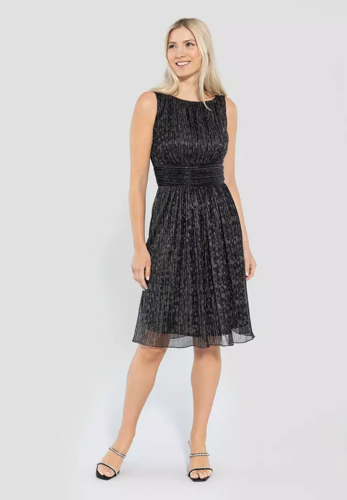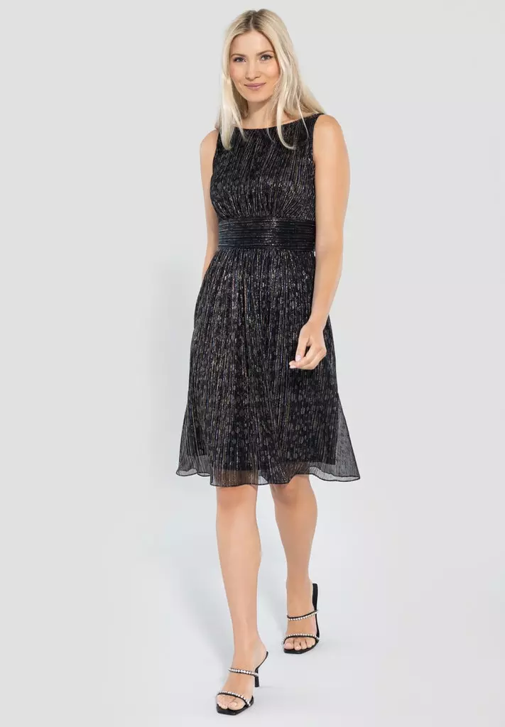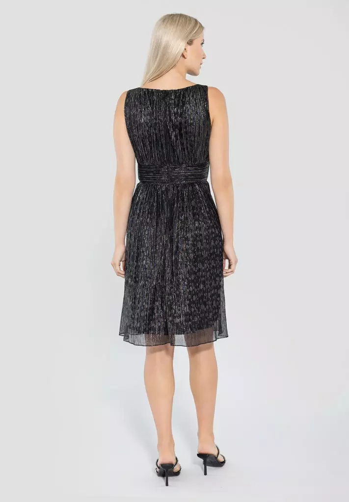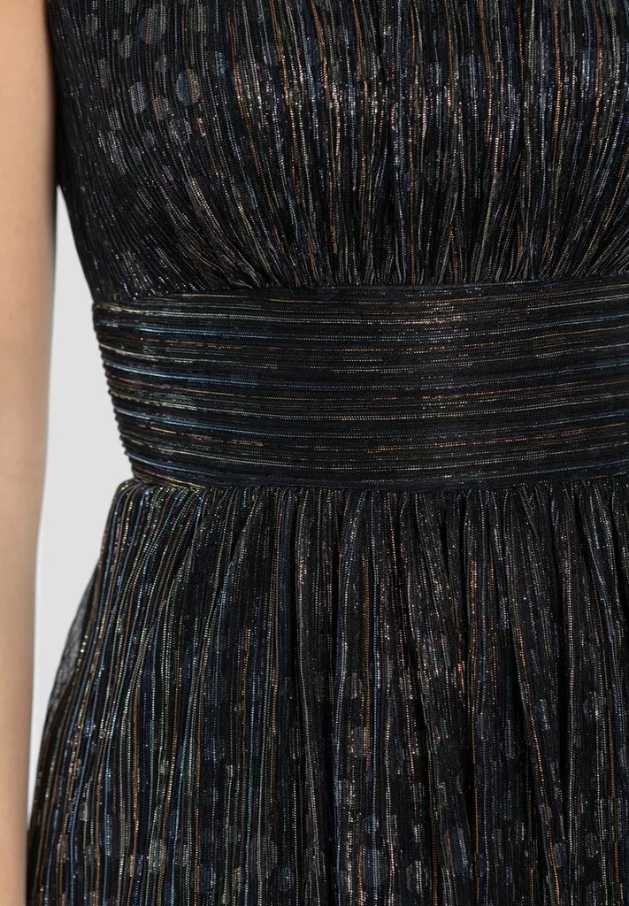 Dit soort lurex jurken zijn altijd favoriet bij vele van onze klanten. Door de brede taille band krijg je een perfecte taille en doordat de jurk soepel lang je lijf valt is de jurk ideaal voor bijvoorbeeld een avondje stappen, een bruiloft of ander event. De jurk valt rondom de knie, is mouwloos en heeft een ritssluiting aan de achterzijde.