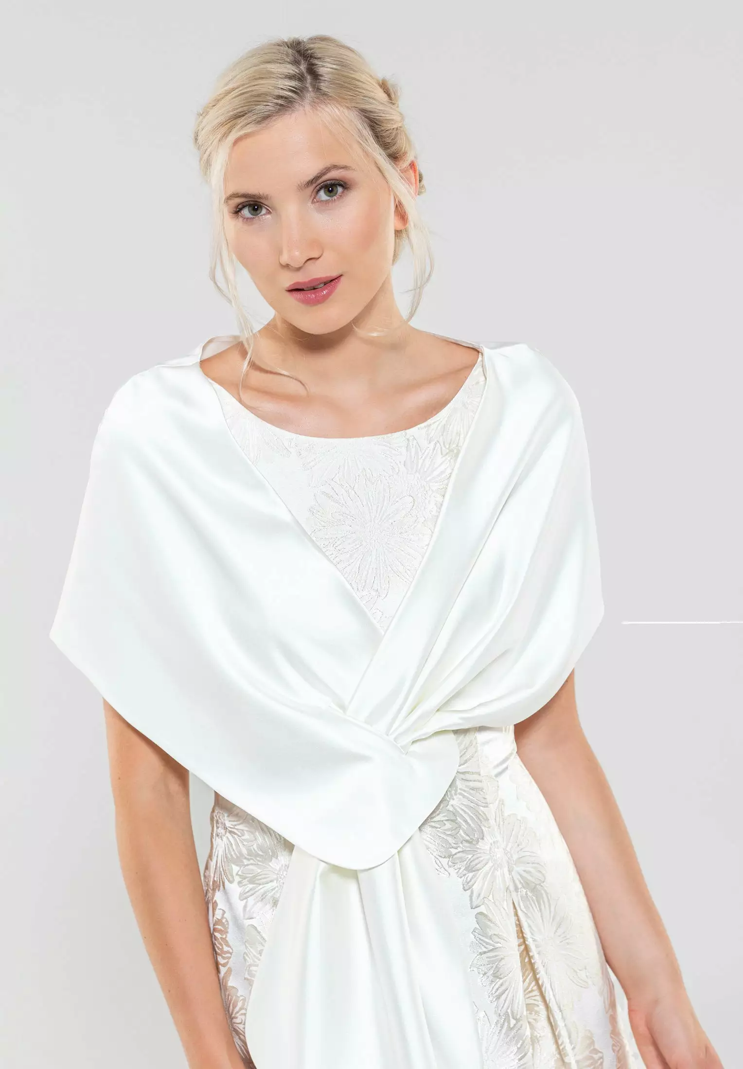 Satin stola die je gemakkelijk kunt dragen over een jurk waarbij een bolero of blazer niet zo geschikt is of om je outfit net de finishing touch te geven! Deze stola is van stevige kwaliteit en is gevoerd.