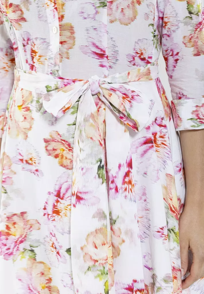 Fris & bloemig! Deze heerlijke 100% katoenen midi jurk gaat je favoriete zomerjurk worden die je zowel naar een bruiloft, tuinfeest of gewoon alledaags kunt dragen.