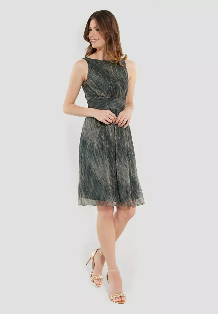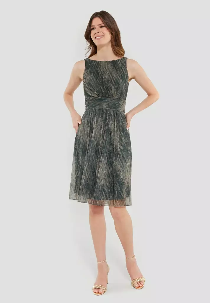 Deze mouwloze cocktailjurk kun je voor verschillende gelegenheden dragen, Een bruiloft, avondje uit, diner of gewoon wat sportiever met een jeansjasje voor iedere dag! Deze jurk heeft een ritssluiting aan de achtgerzijde, valt rondom de knie en heeft een strakke tailleband die je taille goed uit laat komen en loopt vanuit hier zwierig uit.