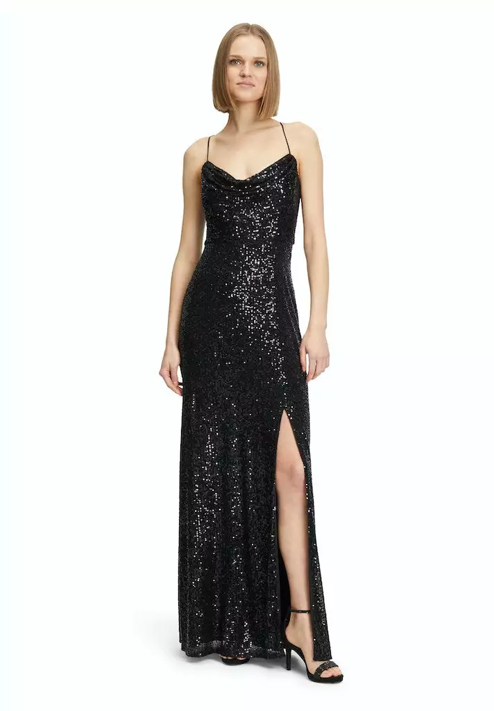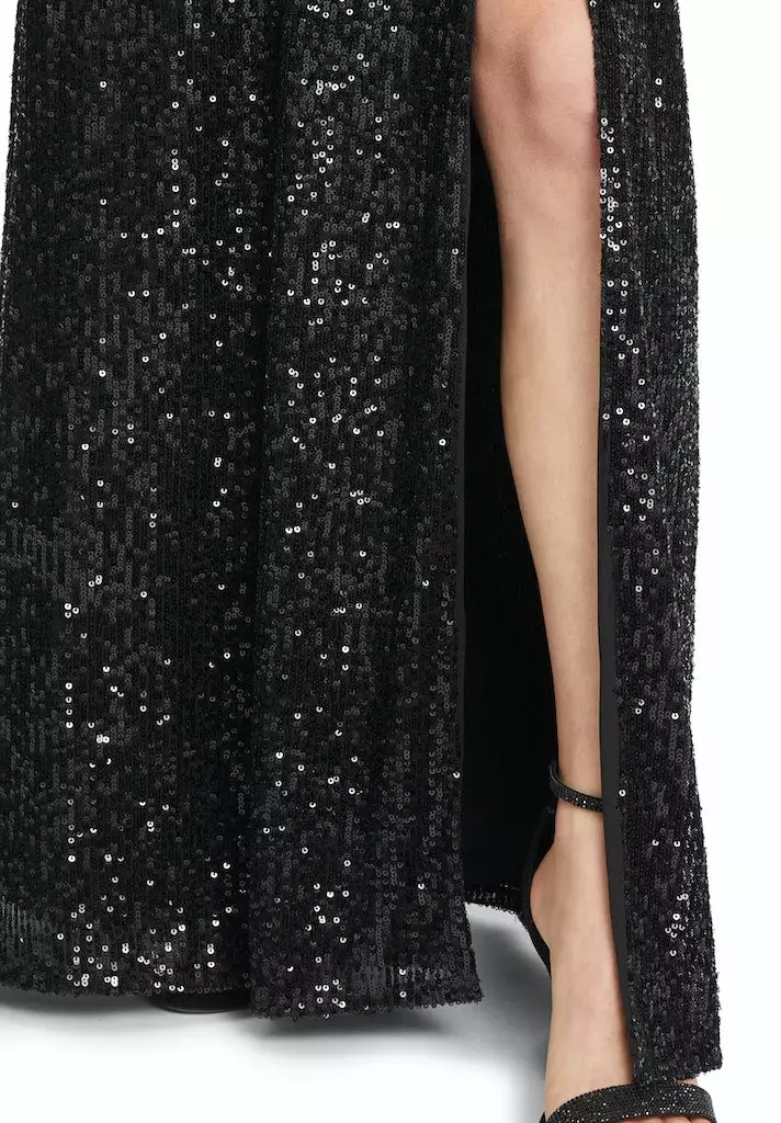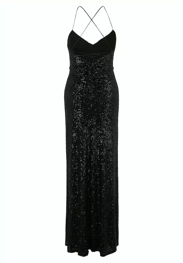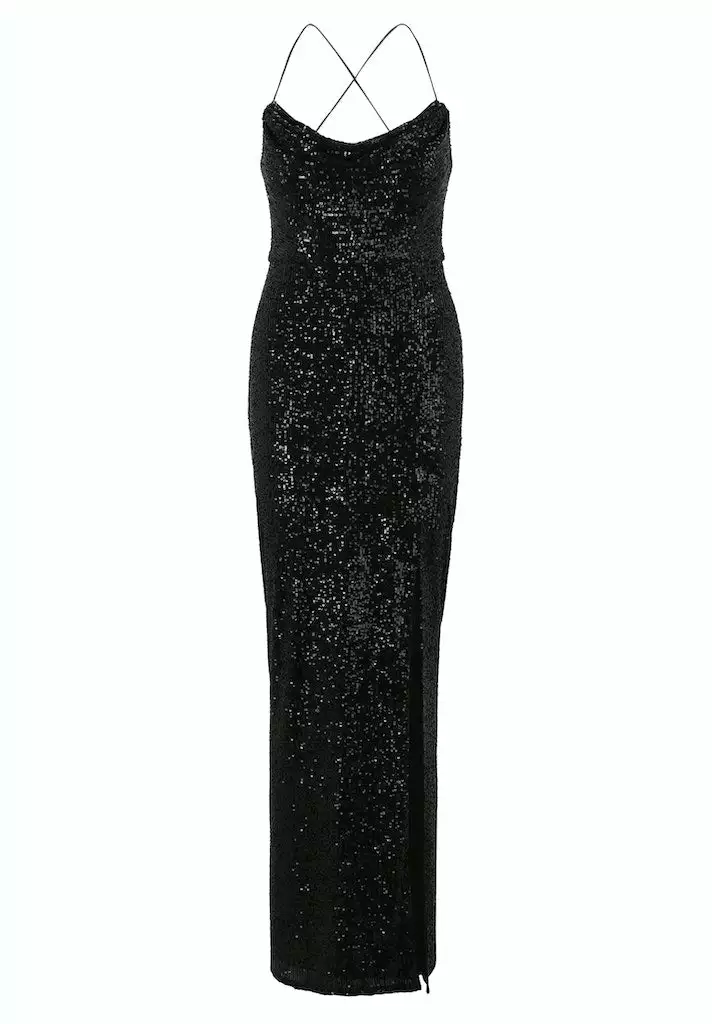 Prachtige avondjurk vol pailleten. It’s time to shine! De stof van deze jurk rekt mee en zit dus als gegoten.