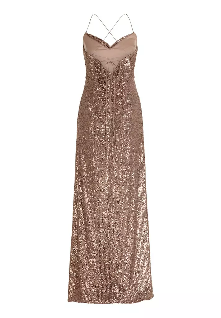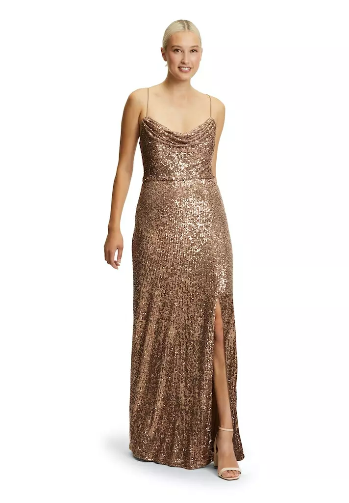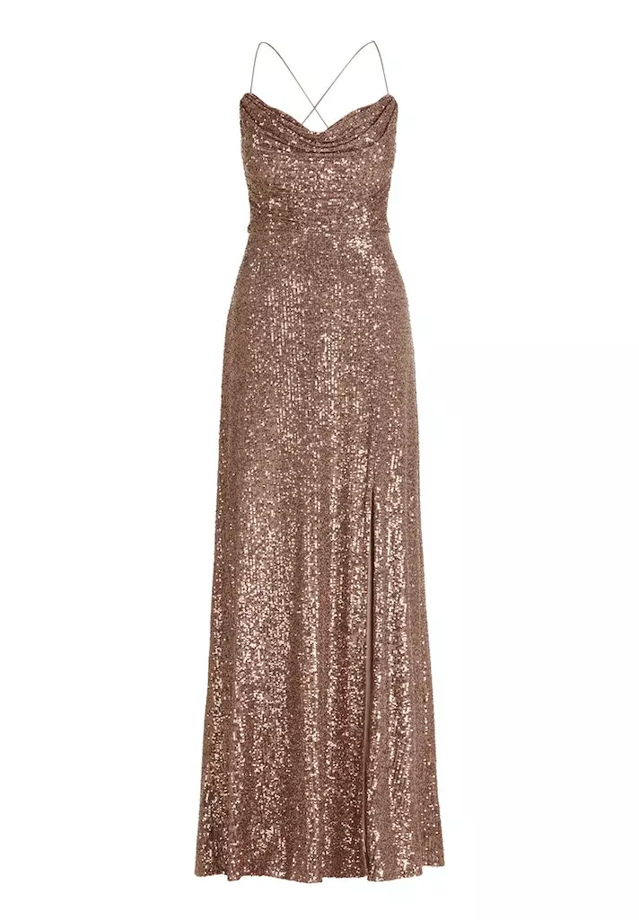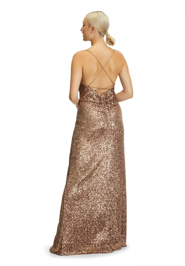 Prachtige avondjurk vol pailleten. It’s time to shine! De stof van deze jurk rekt mee en zit dus als gegoten.