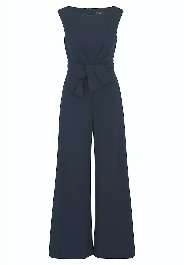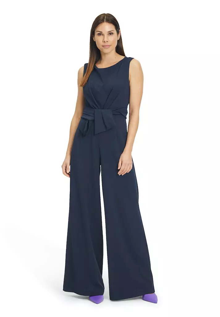 Deze WAANZINIIGE jumpsuit van Vera Mont heeft een super pasvorm. Mooi getailleerd in de taille en een palazzo model pantalon. De jumpsuit is mouwloos en heft een ronde halslijn. In de taille zit een strikdetail waardoor een eventuele buik onzichtbaar wordt!