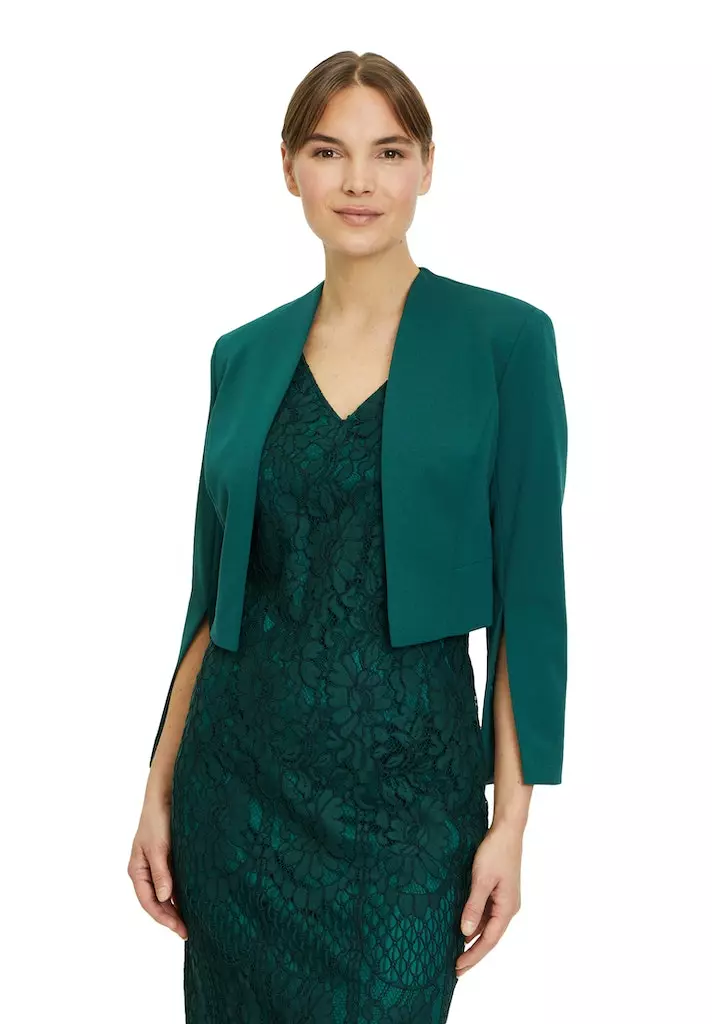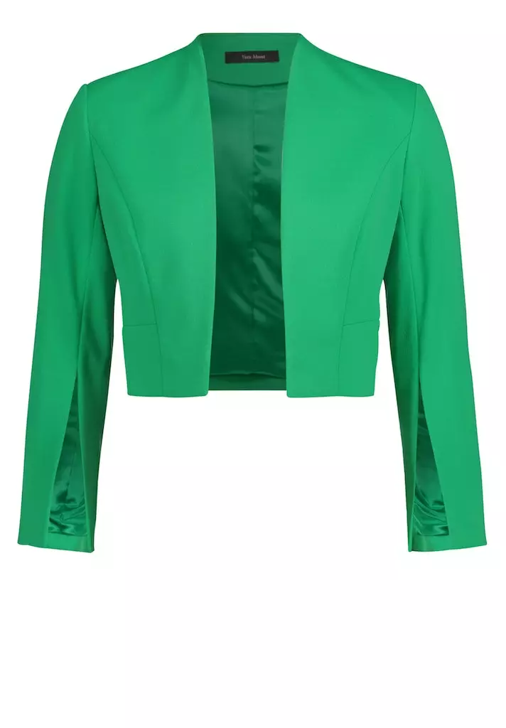 Deze prachtige bolero heeft een split in de mouw waardoor je een heel elegante look krijgt. De bolero valt aangesloten op je lijf en tailleert hierdoor goed.