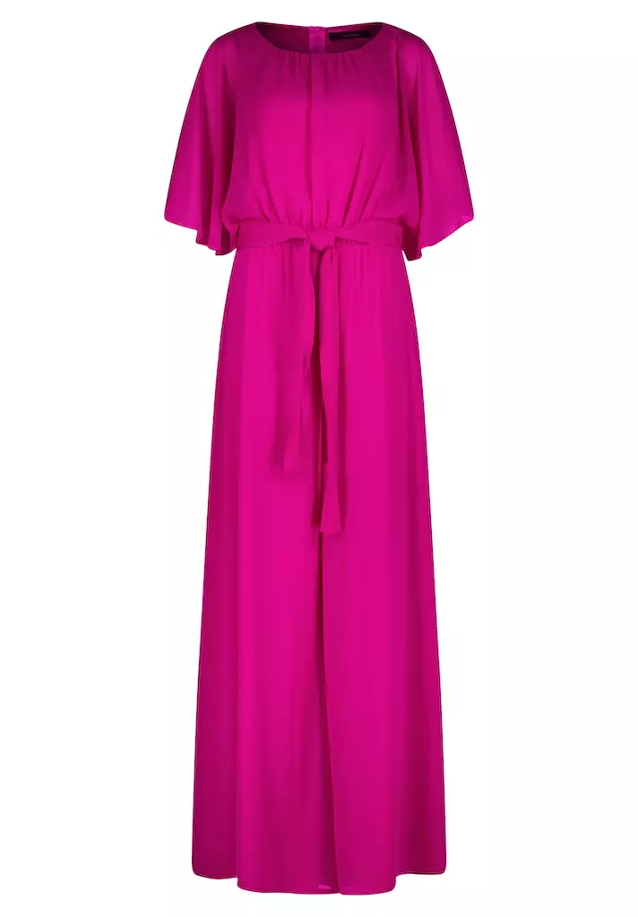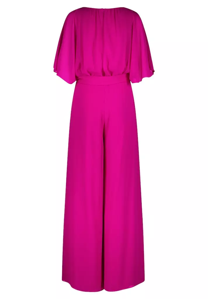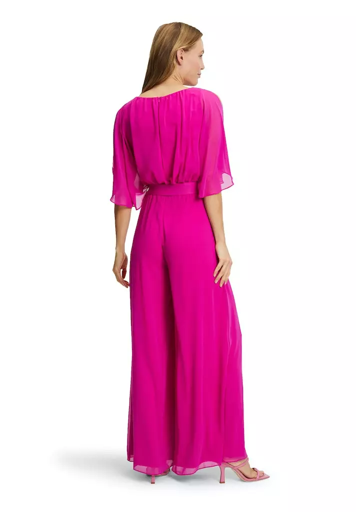 Vera Mont staat naast de perfecte jurken ook bekend om super mooie jumpsuits die gewoon goed zitten! Deze chiffon jumpsuit heeft een palazzo pantalon en blousende top met mooie korte mouw.