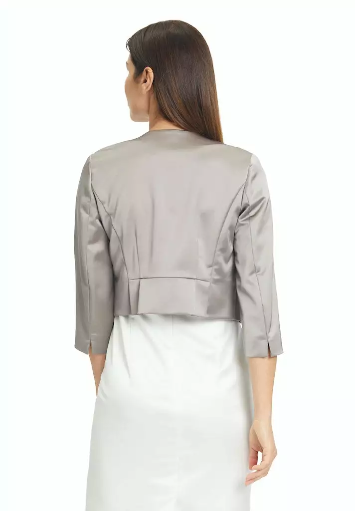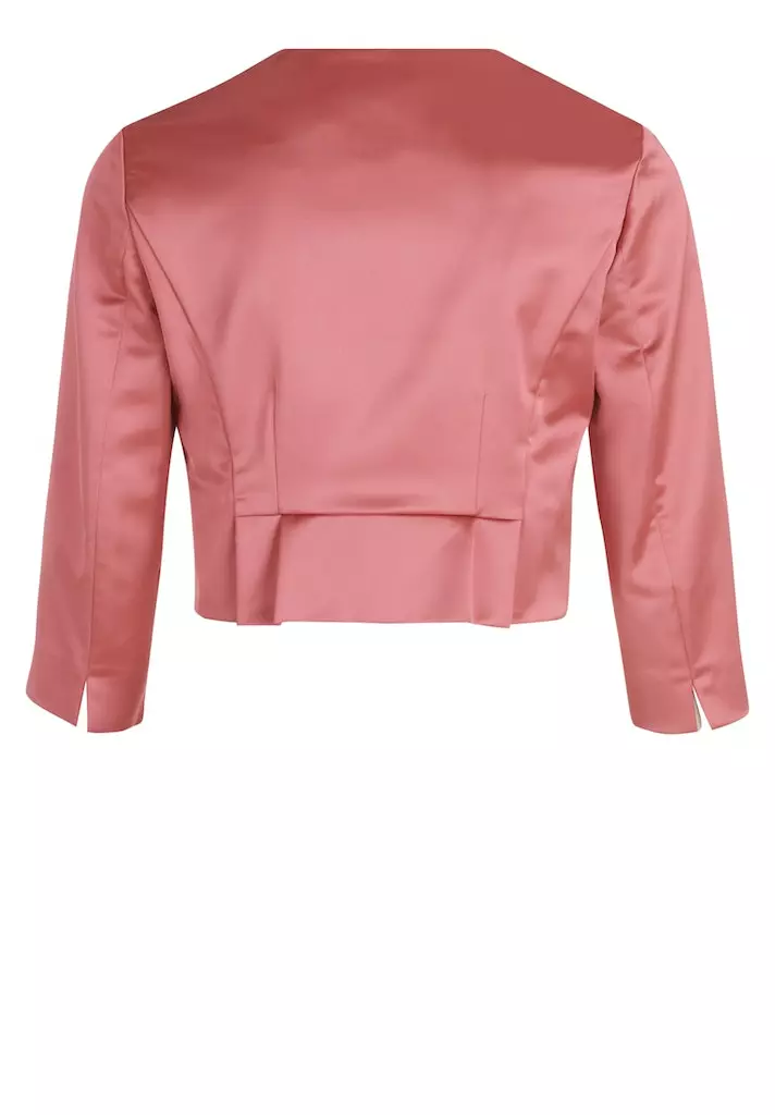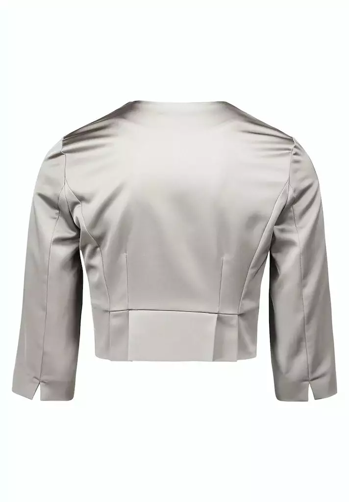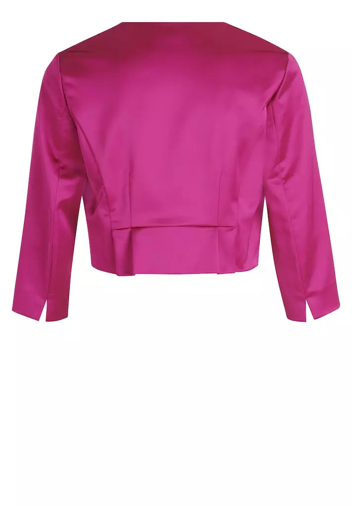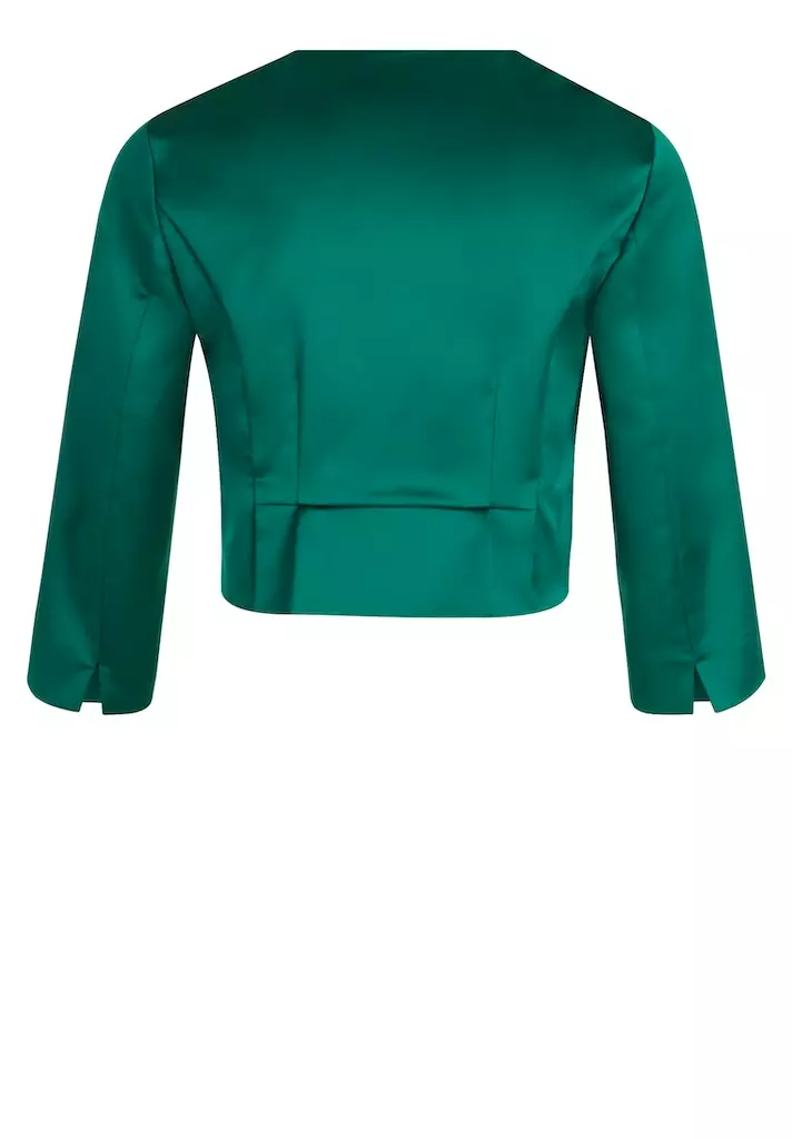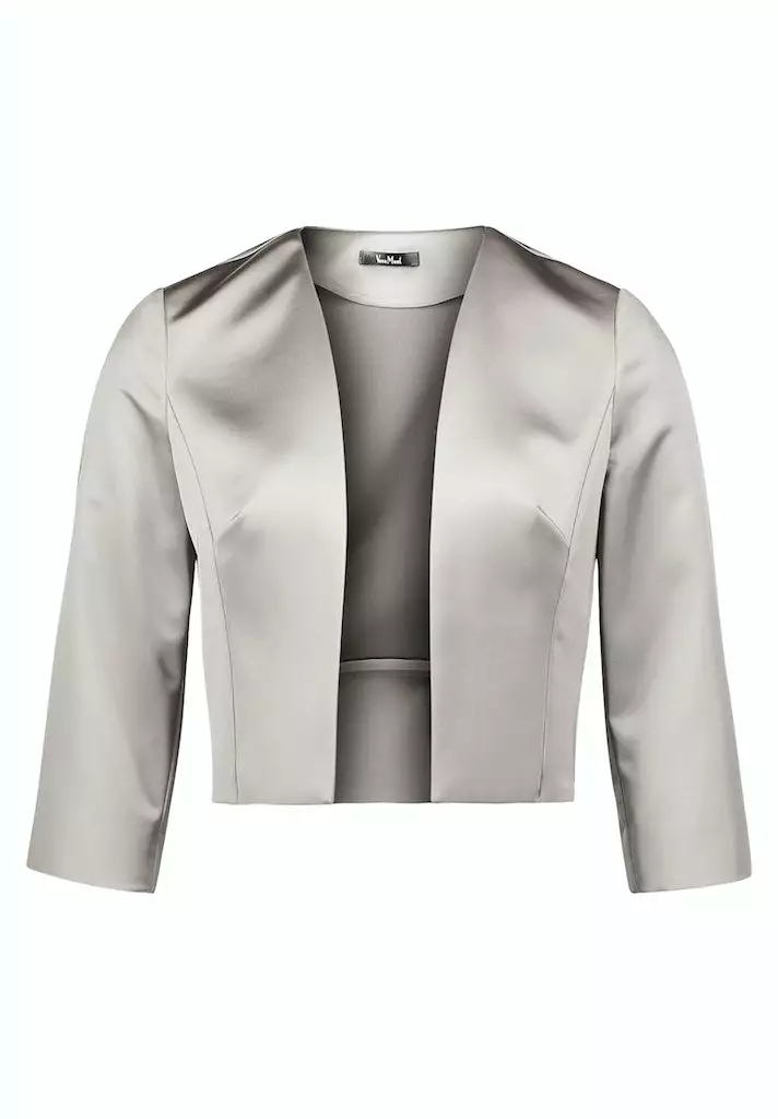 Deze satijnen bolero van Vera Mont zijn niet weg te denken uit onze collecties. Wil je je armen bedekken en gekleed voor de dag komen, dan is deze bolero het ideale kledingstuk om je outfit af te stylen. De bolero heeft een 3-4 mouw, v-halslijn, valt open tot in je taille en tailleert goed op je figuur.